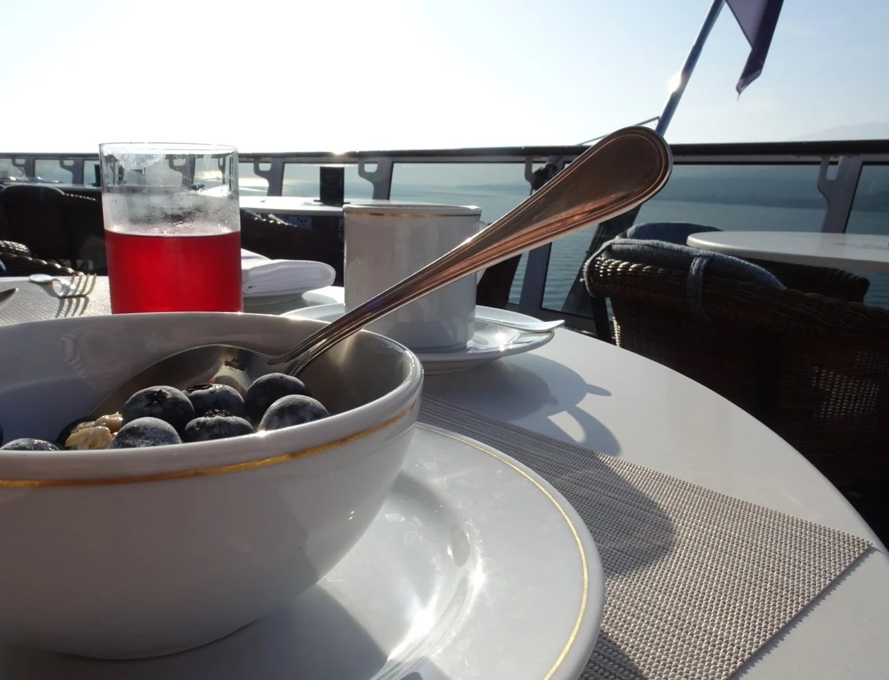 First things first though. Breakfast! Slightly different arrangements for our favourite early morning spot but the old favourites are there and in no time at all, we were sitting out in the fresh air with Birchermuesli and blueberries!