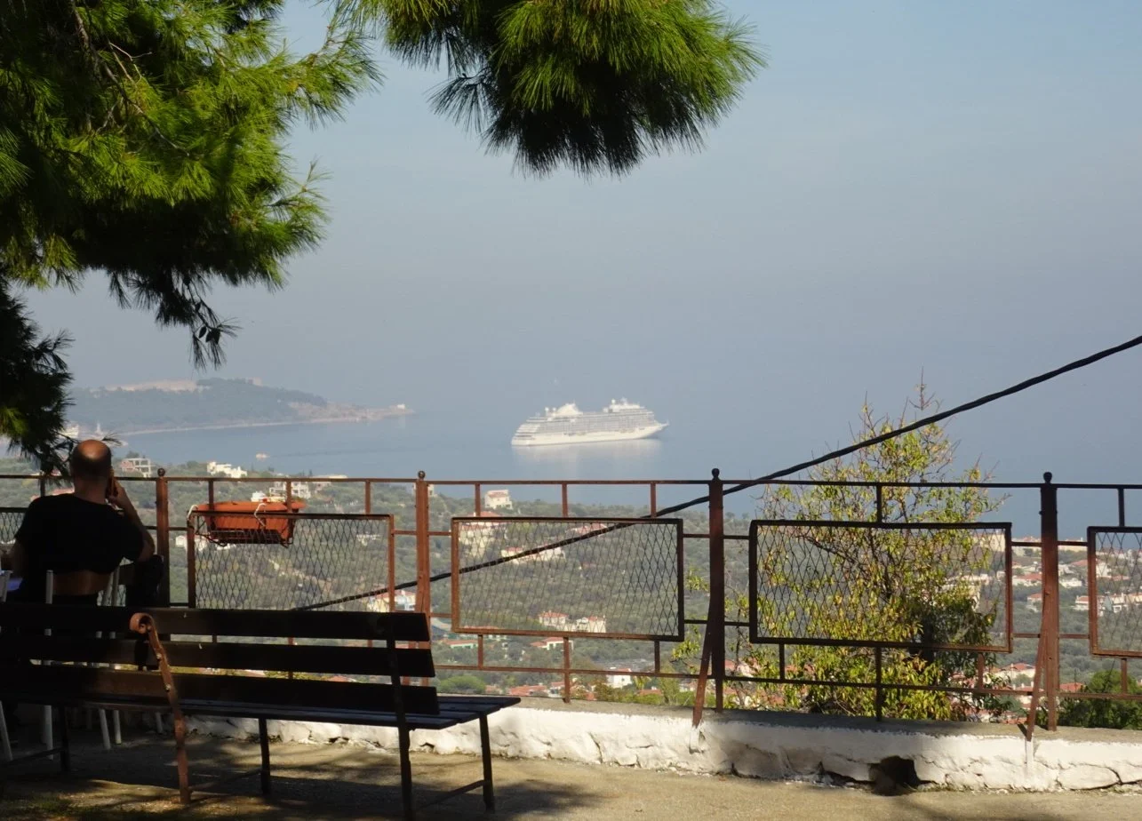 On such a short round trip, it’s important to hit the ground running and that’s exactly how it feels. We had a wonderful dinner last evening and didn’t bother to set our alarm this morning since our tour wasn’t until 11.30am. When we awoke, we were anchored off the Greek island of Lesbos.