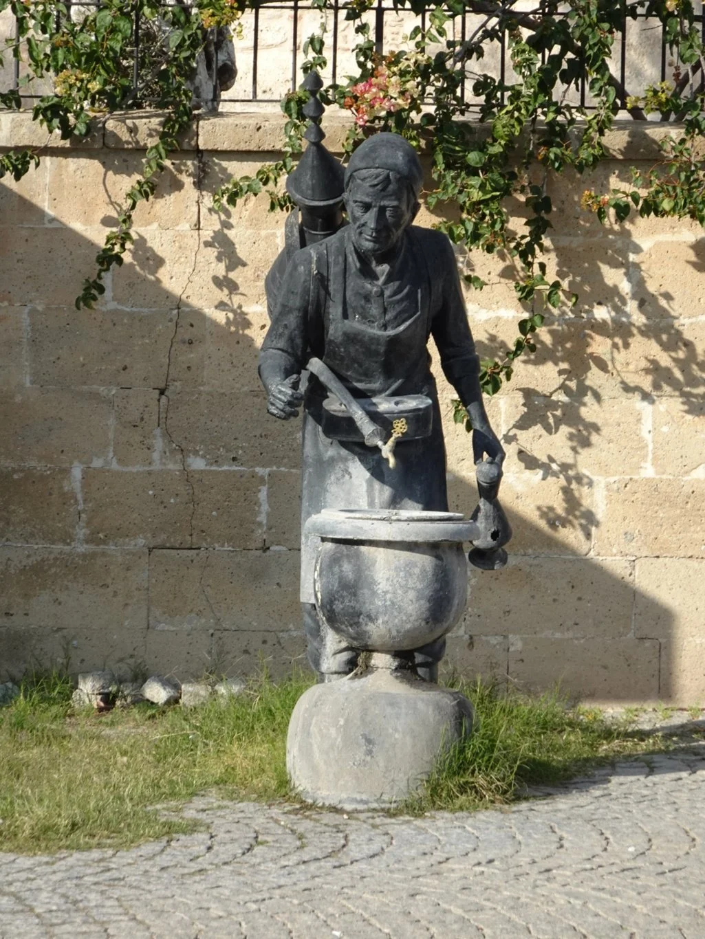 We returned to the bus, which was parked right by this water fountain, made to celebrate the old water sellers who worked in the village before mains water was provided.