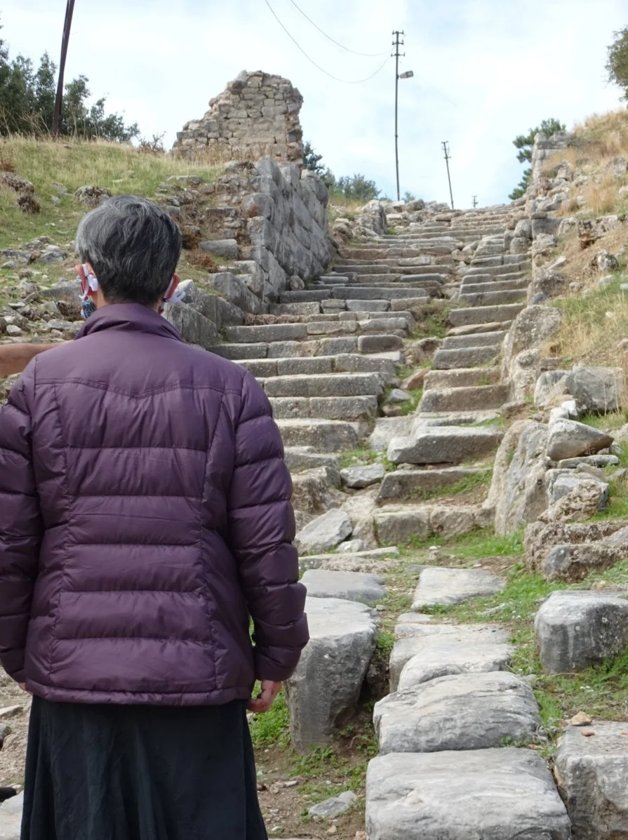 When Regent described this tour as strenuous, that was a pretty accurate description for the minute we stepped from the bus, we encountered our first challenge: a steep set of uneven and rather taxing steps to climb. By now, the temperature had risen rather, the sun was shining and I’ll admit to finding that first climb tricky, especially since Ahmet had shot off at quite a pace.