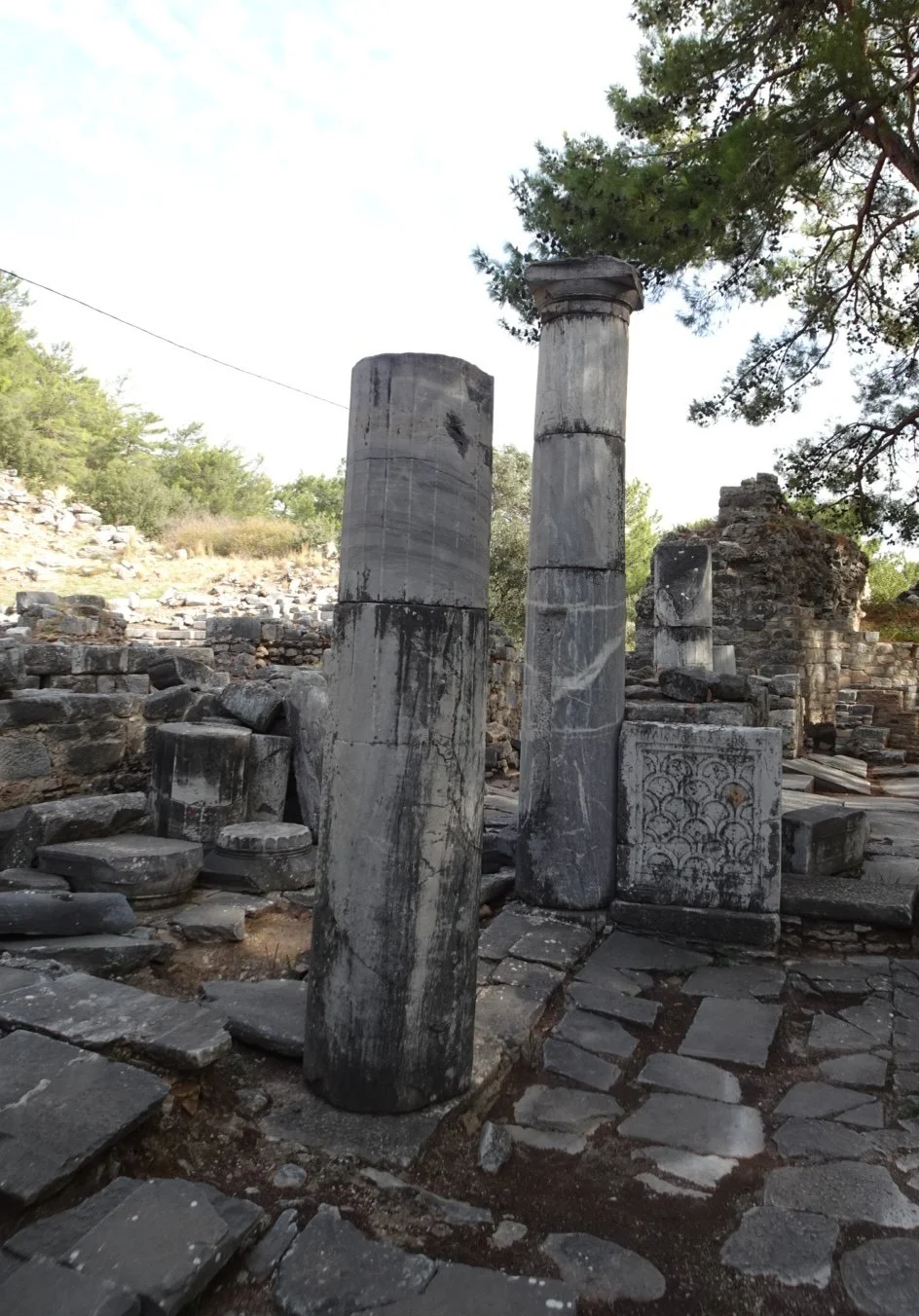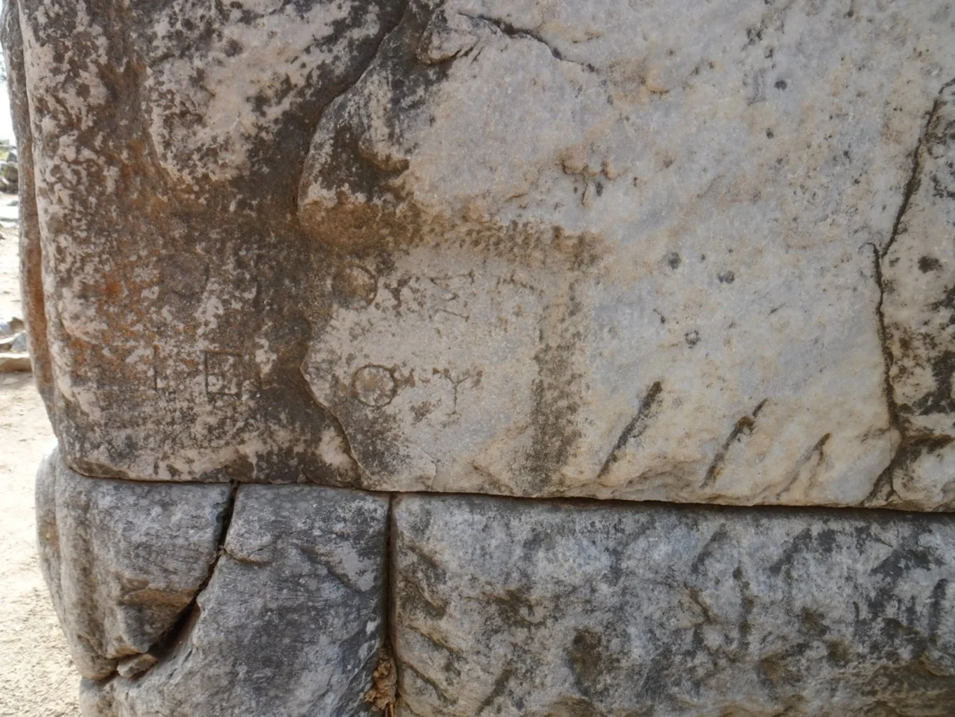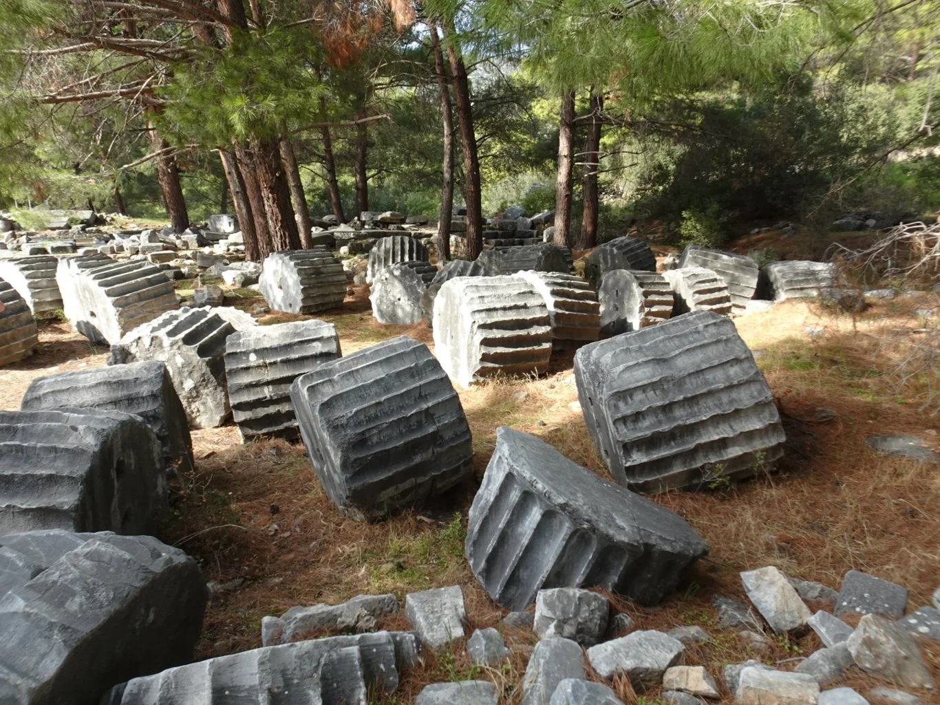 In the 1960s archaeologists pieced together five of these columns using random stones from the site, to give an impression of how the Temple of Athene would have stood, there beneath the steep cliff face and the Acropolis, the highest point in the settlement. Ahmet explained how the Greeks had used iron rebar methods to construct the columns and there’s evidence to show how they were repaired using Roman methods. They used molten lead to hold the stones together which was not only non-corrosive but also had the added advantage of being flexible enough to withstand earthquakes.