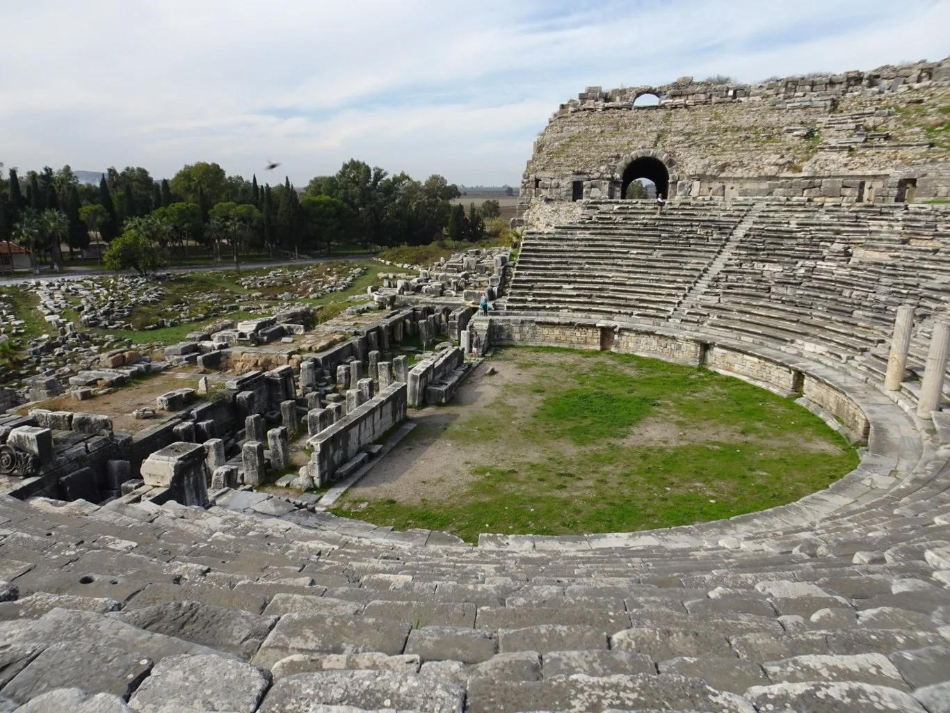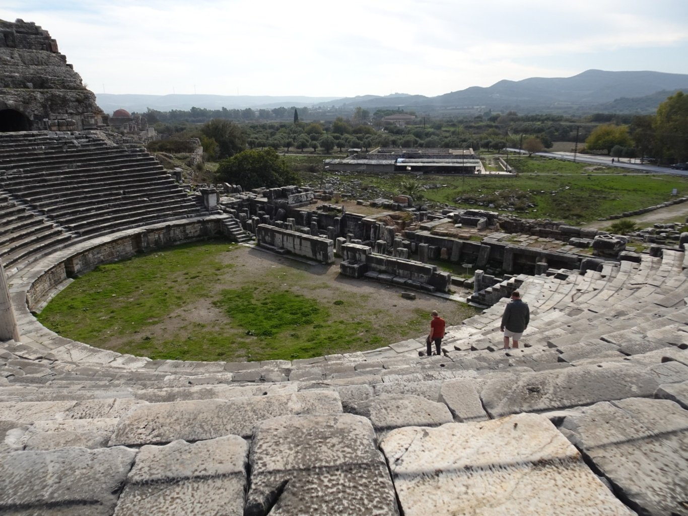 Our destination here was Miletus, where the Roman theatre is the main spectacle. Larger than the theatre in Ephesus, the number of seats here is an indicator of the size of the ancient city. Ahmet explained, a Roman family was estimated to consist of ten people. Given that for any important announcement, one representative of each family was expected to attend the theatre, the number of seats there gave a clear estimation of a tenth of the population. Interesting!