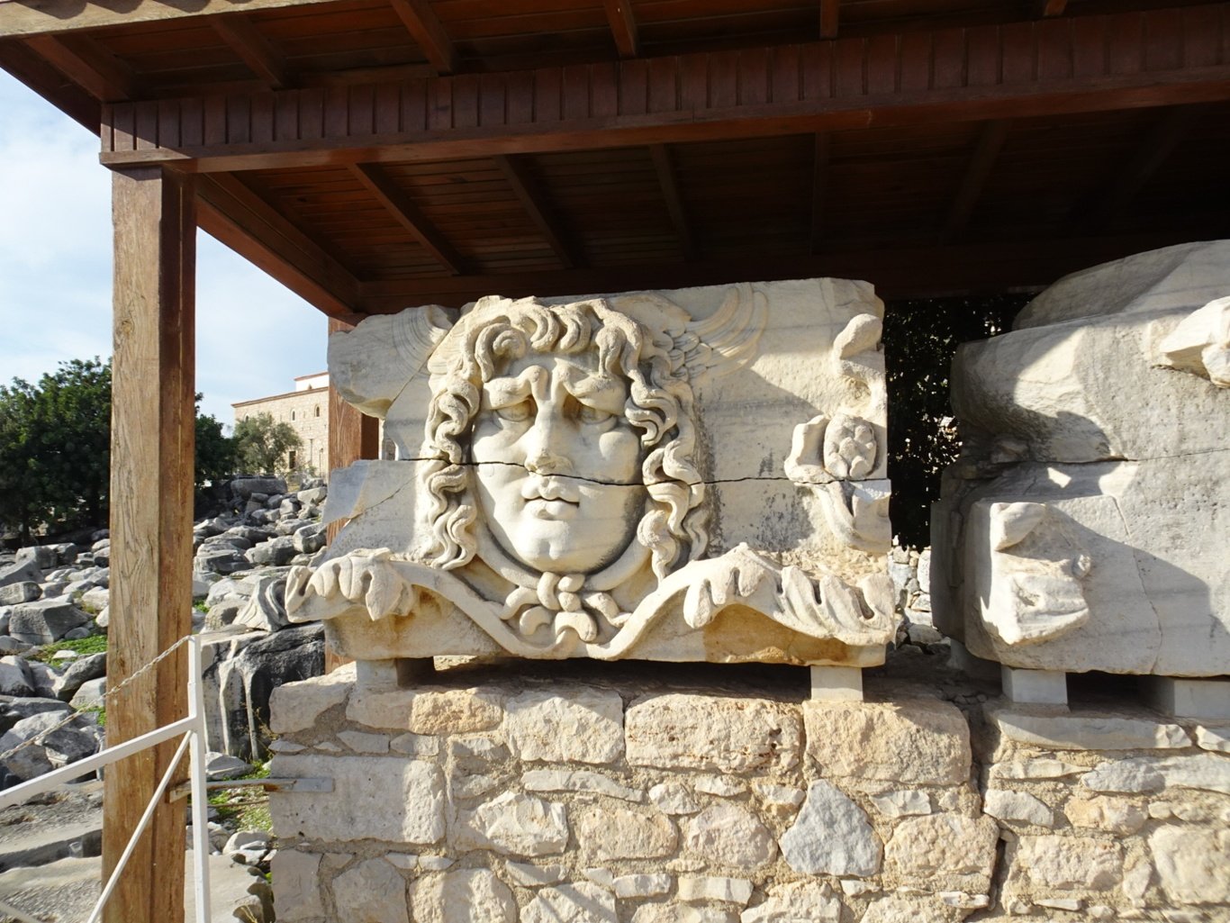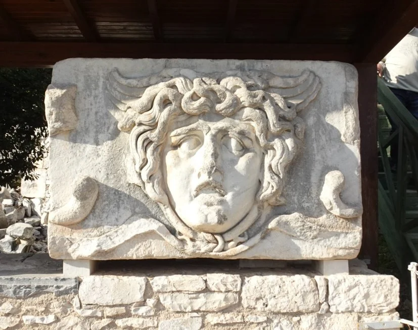 As we gathered just inside the entrance, Ahmet began his story with a young woman on either side of him…the tale of Athene, Apollo and Medusa. These beautifully preserved stone carvings were the only ones to remain here - others are in Istanbul and the Pergamon Museum in Berlin.