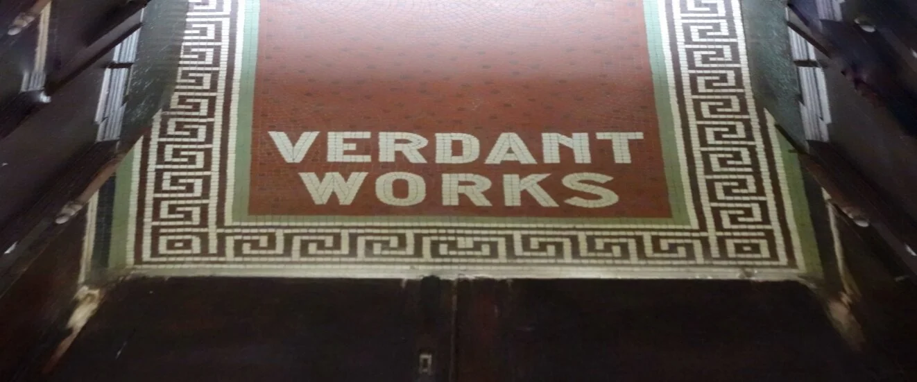 We didn’t really know what to expect of Verdant Works except that my friend Penny had a piece of her work hanging there in the form of a panel in the Scottish Diaspora Tapestry. We parked the car and walked down a narrow street in this industrial area of the city.