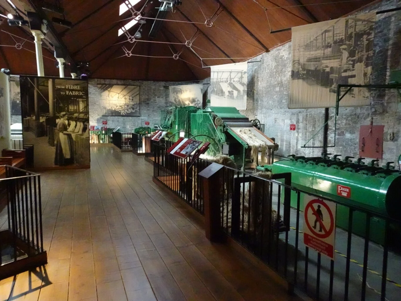 I always love the specialist vocabulary that goes with a process such as this: batching, softening, carding, drawing, roving, spinning, winding, beaming, weaving, finishing. There was one other term not shown on this panel which I’d heard but not understood: Calendering - all of this an a new word learned as well!