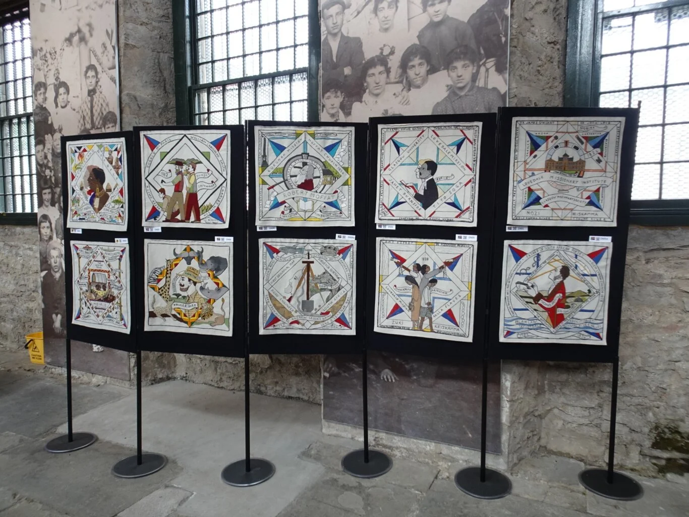 The panels were all hanging in a two storey open beamed former factory workshop and the very helpful volunteers were happy to point us in the direction of the South African panels.