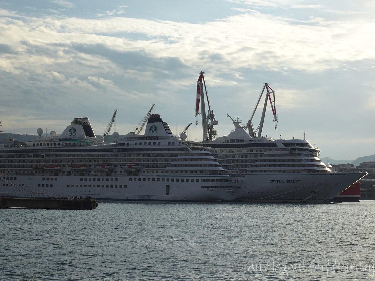 Drawing the curtains today brought a surprise in the form of two ships there already…or? A closer look revealed they are two Crystal ships there in the shipyard following the company’s demise earlier in the year. I understand they are being refurbished ready for a relaunch - interesting! The costs involved in all aspects of the cruise industry are eye-watering, especially so when set out like this.
