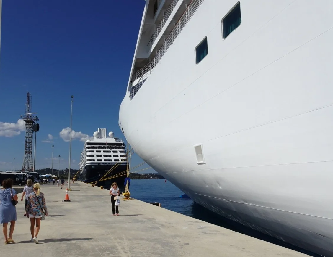 We were due to leave on tour at 1pm and went out to meet our guide on the quayside, discovering as we did that we had company today: The Azamara Quest was berthed alongside too.