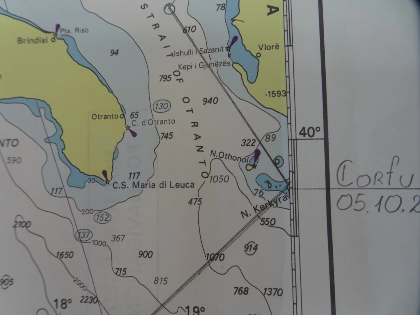 We could see land here and there, which always prompts us to get out our phones and look at Google Maps to find out exactly where we are and what we can see. This morning, that wasn’t working too well so I went in search of the ships chart. Having found it, I was amused to find the location of Corfu there - hoping that the officer navigating our course had access to the next page!