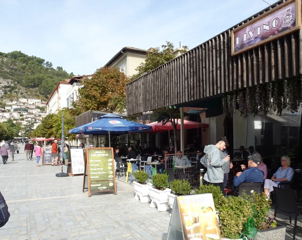 Our coach dropped us off at the end of the Promenade, a wide street alongside a park lined with coffee shops and shady benches. We had half an hour or so to get a drink, take a break and wander a little. Ilir shared the Albanian for Hello and Thank you with my Hero and I, and off we went trying to practise and remember these tricky phrases. Albanian language is one of the “odd” bunch of languages: Hungarian and Finnish being another couple.
