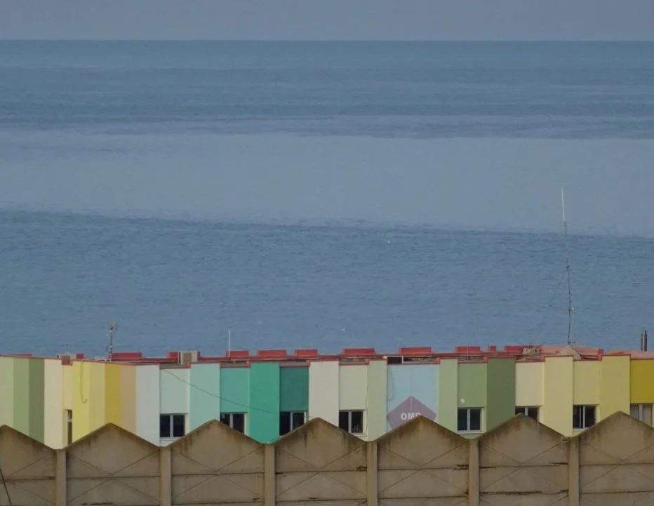 We were berthed in a pretty ordinary dockyard, but a row of little pastel coloured houses caught my eye. Might there be a beach just over that wall? I had no idea!