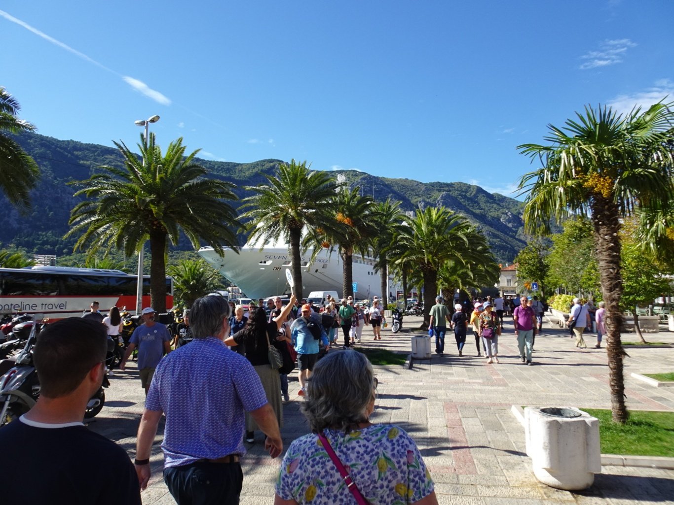 When we left the museum, there were a few more people out and about, enjoying the sunshine. We returned to the bus and began our way back to Kotor via a different route. This took us through Budva, a pretty seaside resort and into the bay along another tricky road which led down into the bay where our ship was waiting.