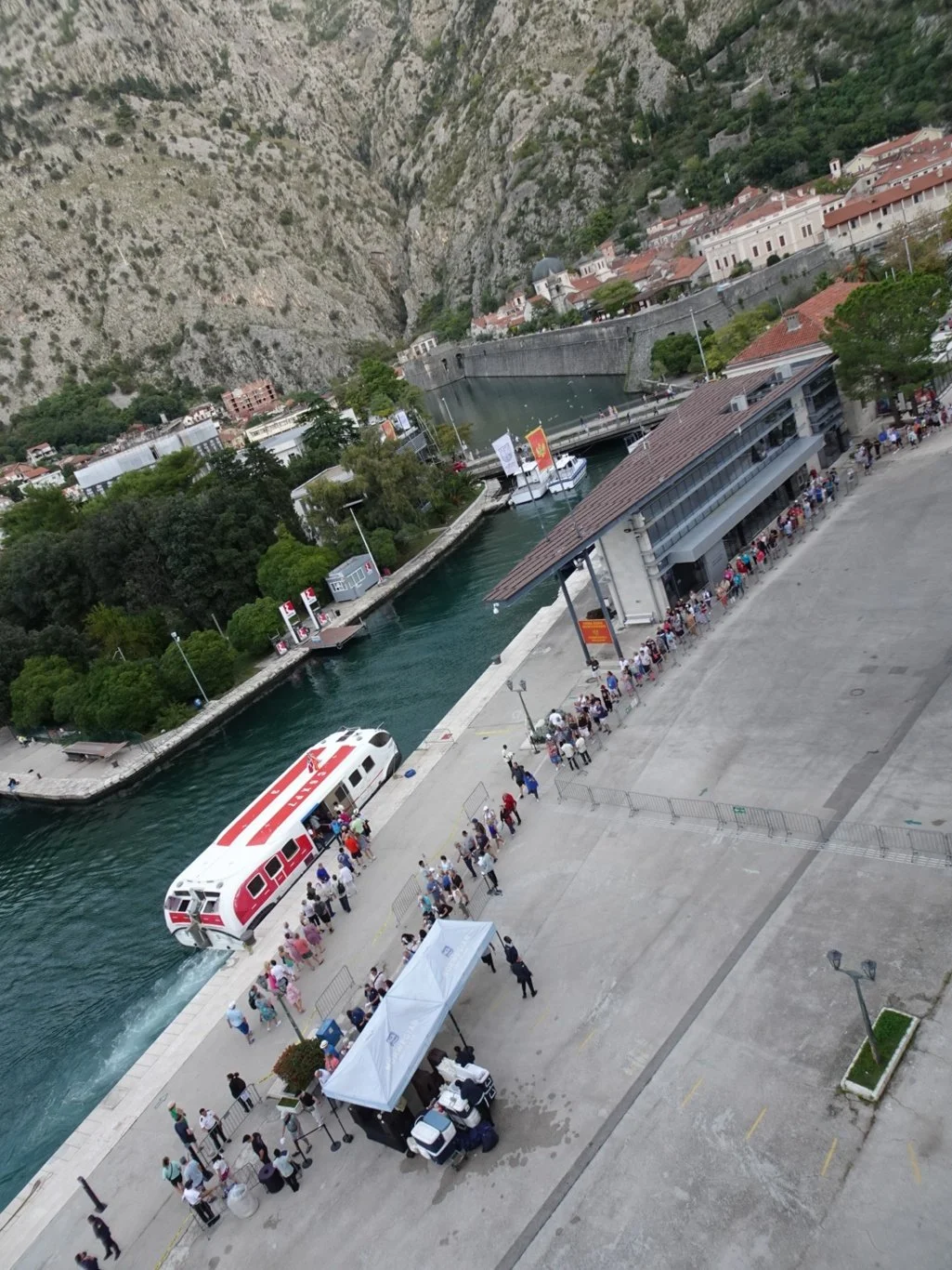 We were on a tour called “Highlights of Montenegro” since we’d not been here before and wanted a good introduction and overview. First of all, we were going to climb (in a bus!) out of the fjord-like bay where we were docked and drive up to the summit of a road known as The Serpentine. It’s a fairly steep climb to reach the start of this notorious stretch of road and once there, there are 25 hairpin bends to navigate.