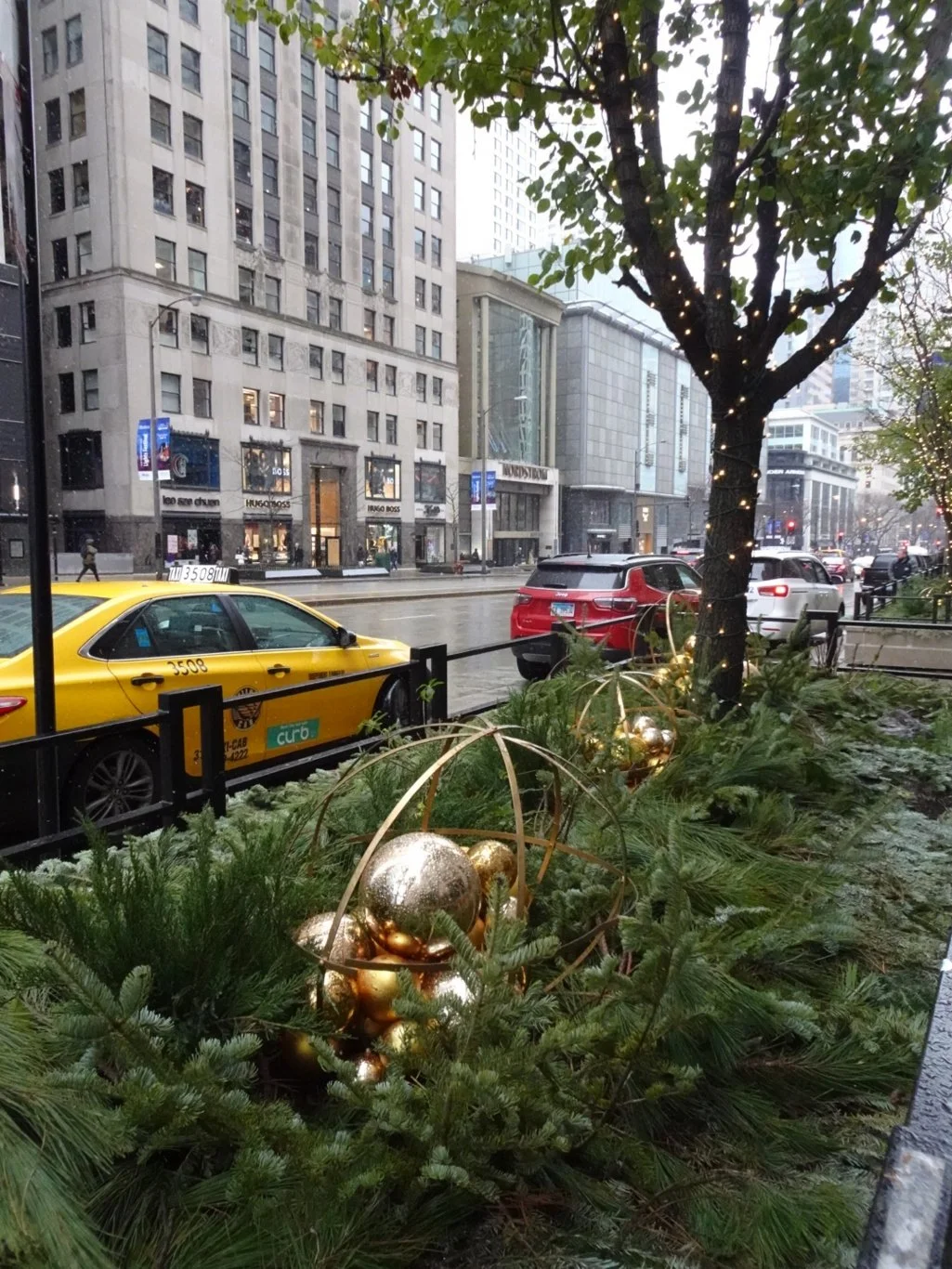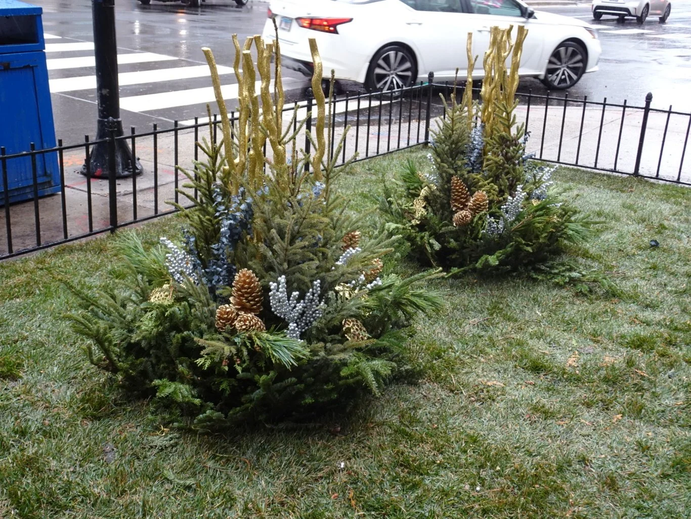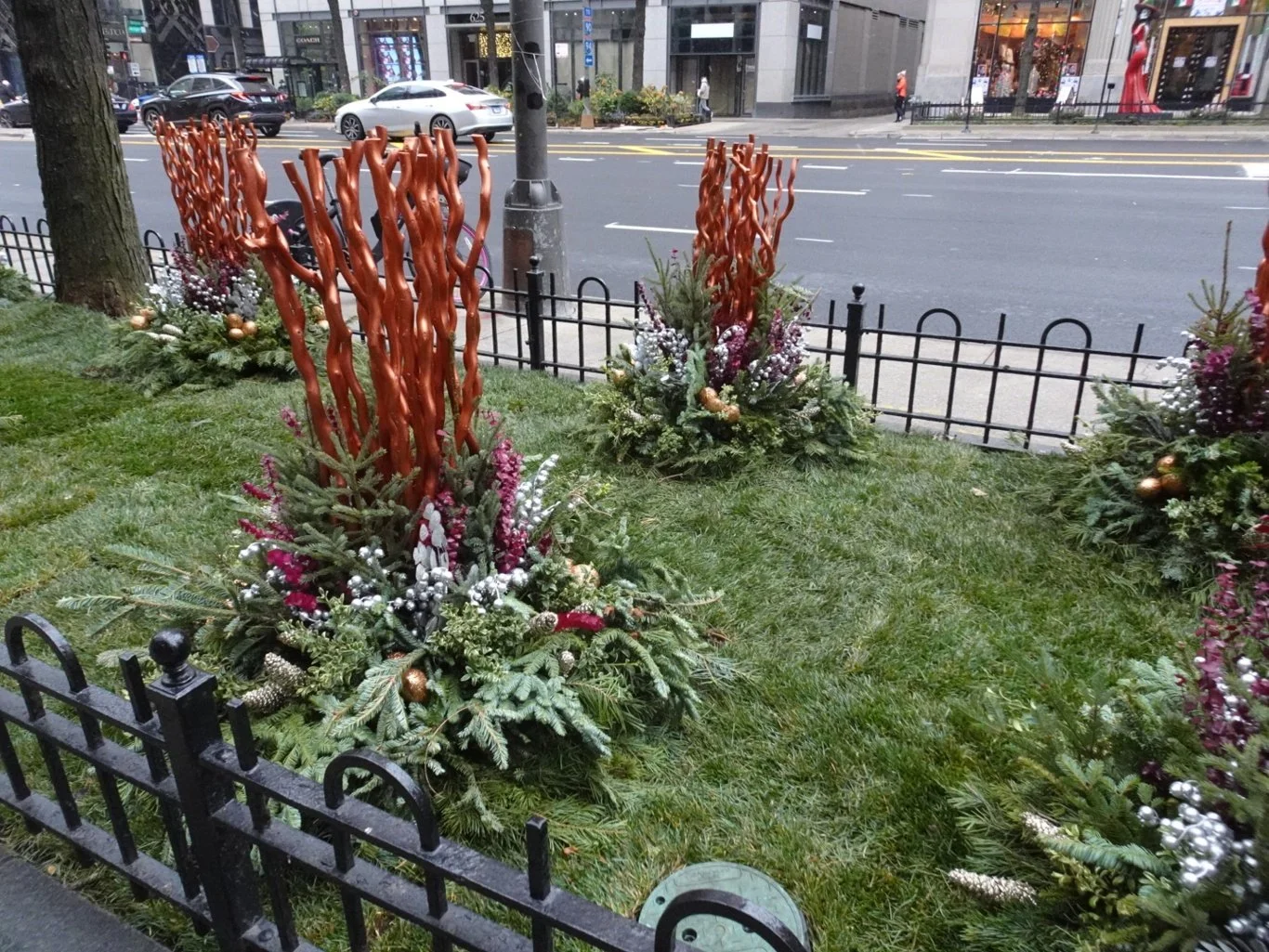 Crossing the road to return along the opposite side, we saw other, similar Christmas arrangements in planters along the way. Beautiful though they were, they did all appear to be very similar variations on a theme. Perhaps that was planned?