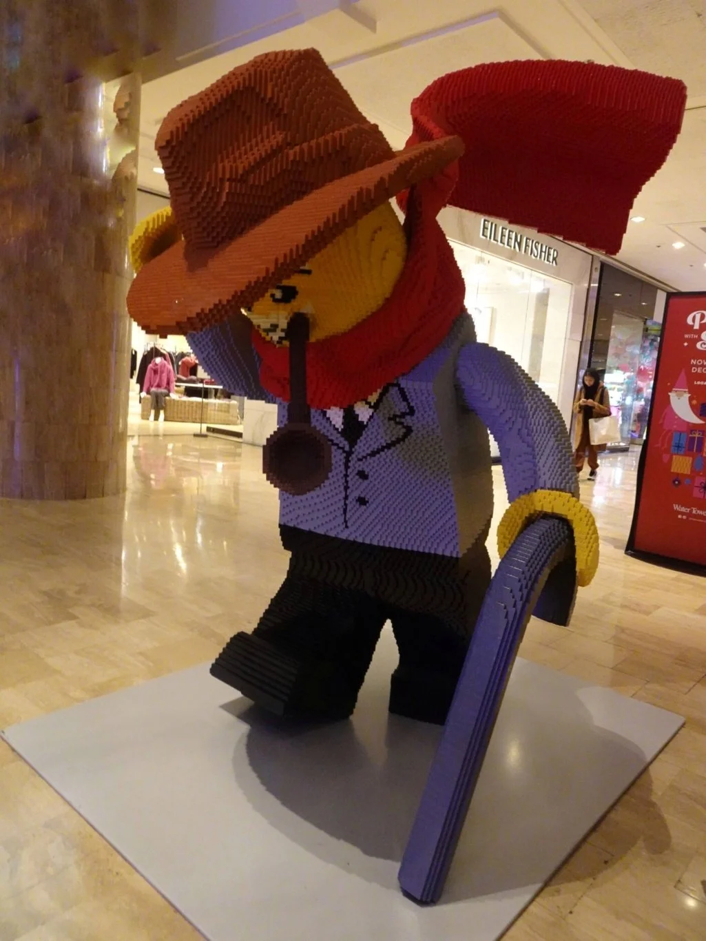 We were certainly flagging by now though, so were happy to turn into Water Tower Place, a familiar shopping mall where we knew there were a couple of shops where we might spend some time browsing. One of those was the Lego shop, and this fabulous (not so) little figure at the foot of the escalator was drawing quite a lot of attention. So cute, isn’t he?