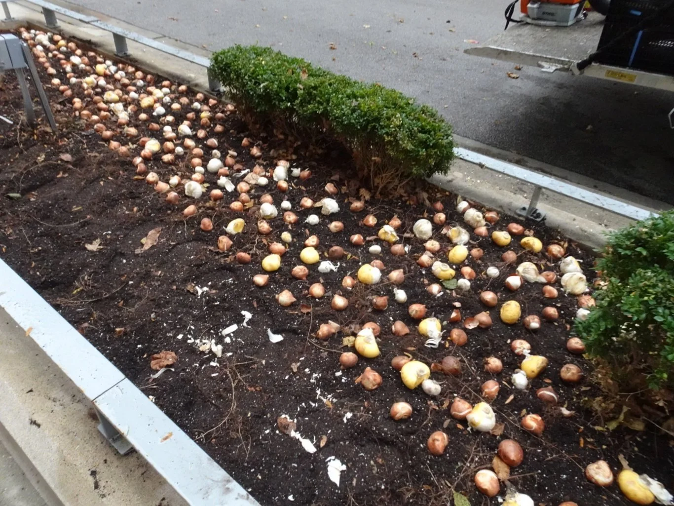 They were planting a huge number of bulbs in those beds in a density sure to create a spectacular show next Spring.