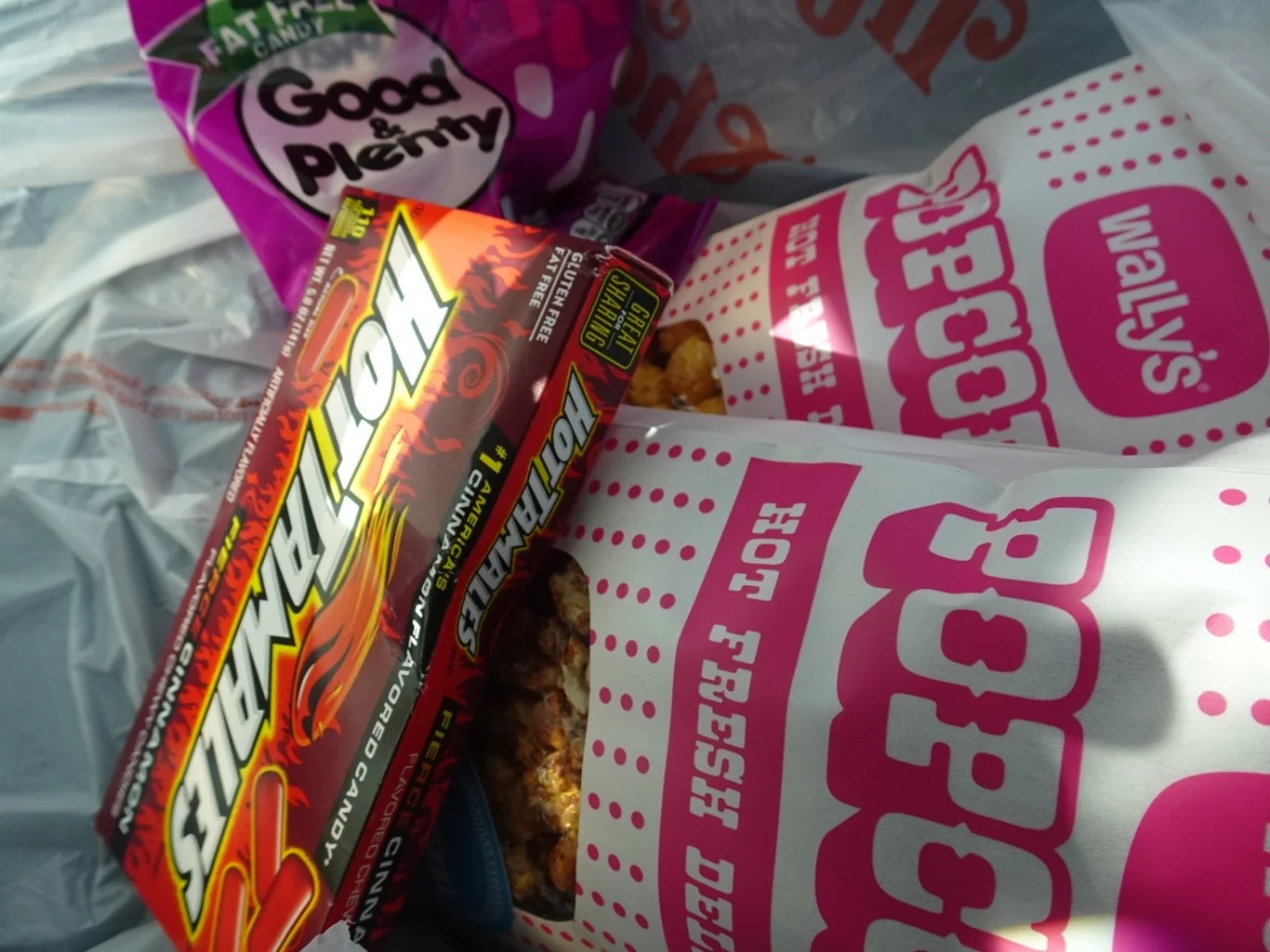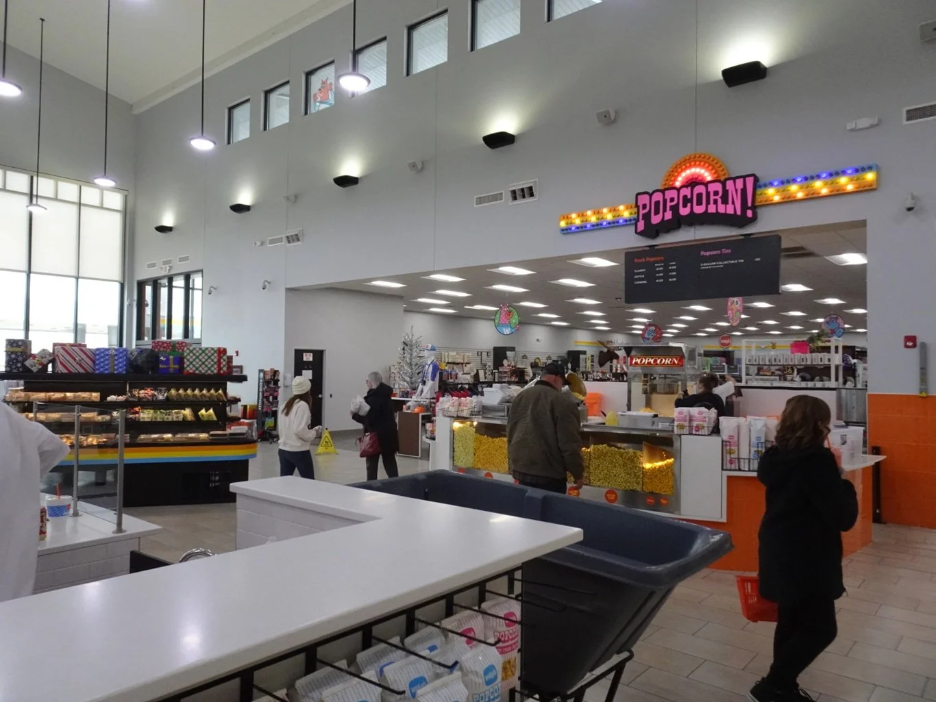 But in we went, discovering a huge hall rather like a British motorway services. We’ve not seen such a place here in the US before, so perhaps this is a new development in the last three years or perhaps it’s just a regional thing? Anyway, the washrooms were spotless, there was friendly service at the counters and plenty of space to stretch our legs. Whilst I bought popcorn, my Hero got hot drinks and we went to the register by the exit to pay.