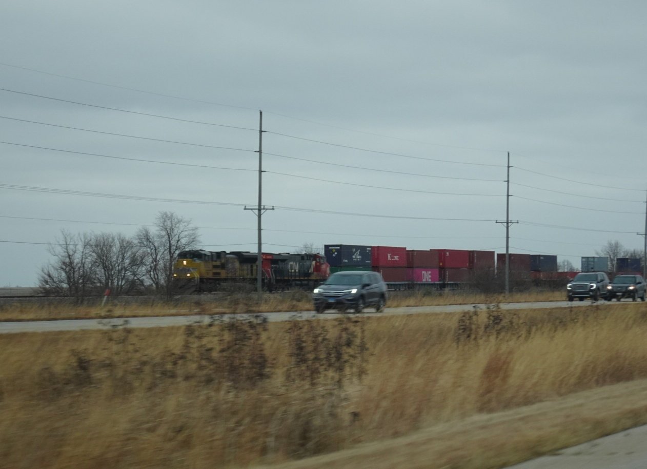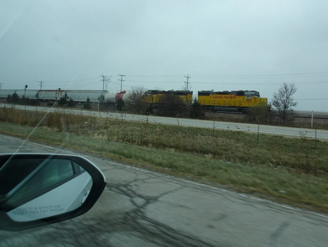 Excitement came a few minutes later in the form of a train. My Hero has always been fascinated by American railroads and a bit of trainspotting added to the interest of the journey.