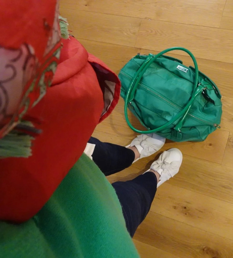 Mary might recall my buying that scarf in Austin, TX on one of our road trips. As I tied it to my red bag and plonked it on the seat whilst getting my act togerher, I recognised that all of my “love colour” traits were being satisifed.
