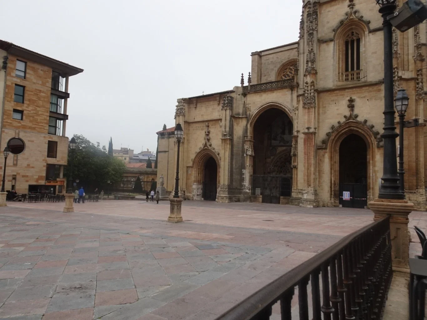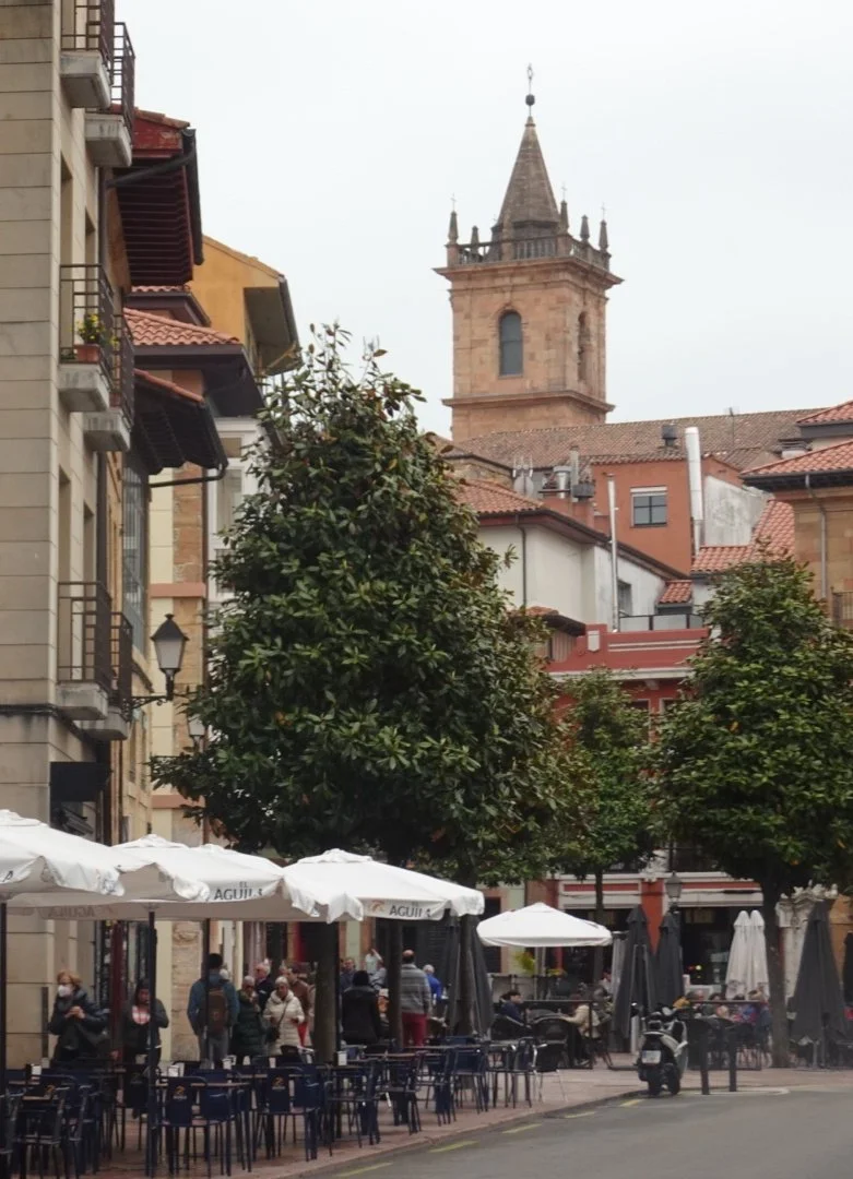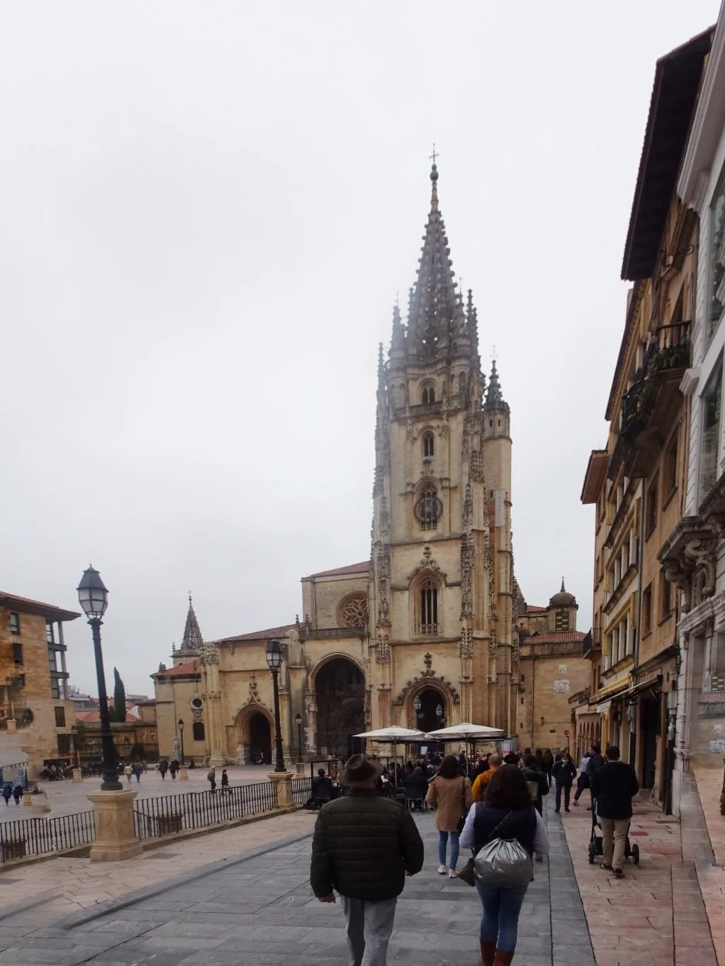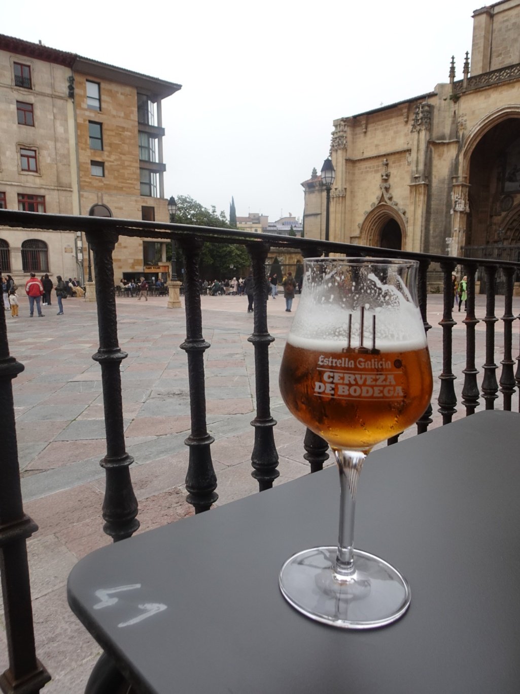 Oviedo’s cathedral is dedicated to San Salvador and being Sunday, we’d have had to have timed our arrival very carefully indeed to avoid a service. But the Plaza Alfonso II was lined with one or two cafes and we were ready for a break, so we settled ourselves down with a ringside seat and did as we do…