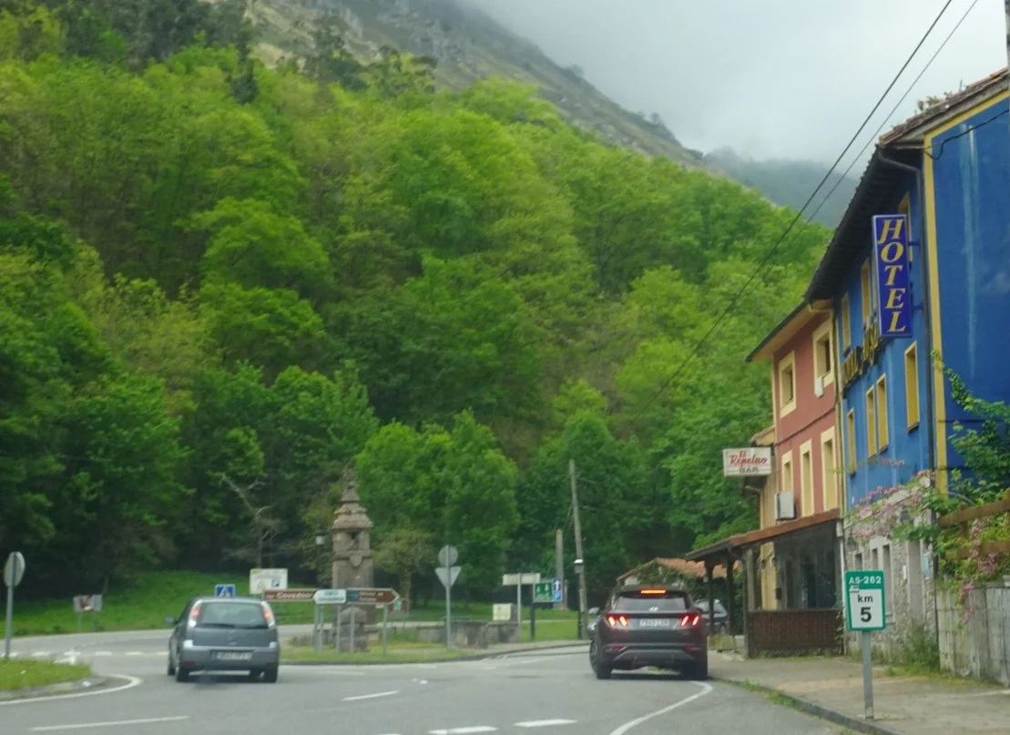 It was a gradual climb up the valley to Covadonga and at various spots we got a hint of the traffic management measures here, ready to put in place if needed. Several car parks at different stages of the route, clearly signed with indicators of the level of traffic. We were rather pleased to be here when none of that was needed at all.