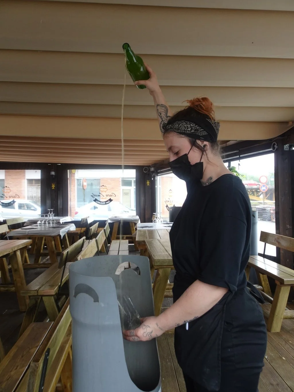 There was one last adventure before we headed back. We were both ready for a break although only one of us could partake fully in the Sideria experience, where the naturally fermented cider is poured from the bottle from a great height in order to aerate the drink and enhance the flavour. Most of it goes into the glass! The rest is caught in the purpose made receptacle standing by each table. So both were able to enjoy the spectacle, my Hero made do with his non-alcoholic beer this time.