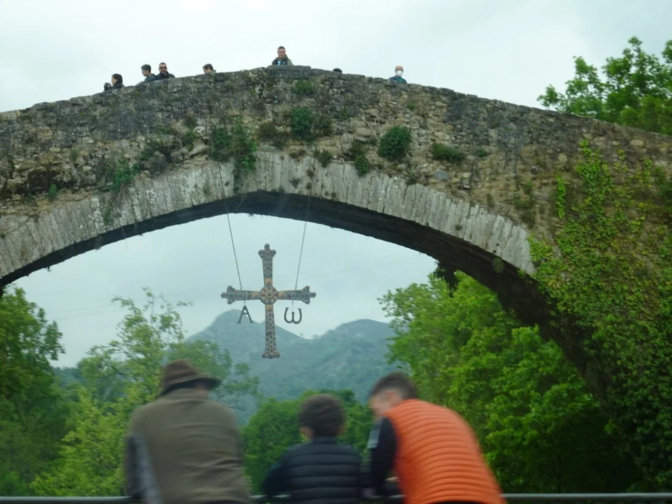 As we passed the Roman Bridge for the last time today, I counted the people upon it but felt thankful that this time, I got a better look at the Asturian cross.
