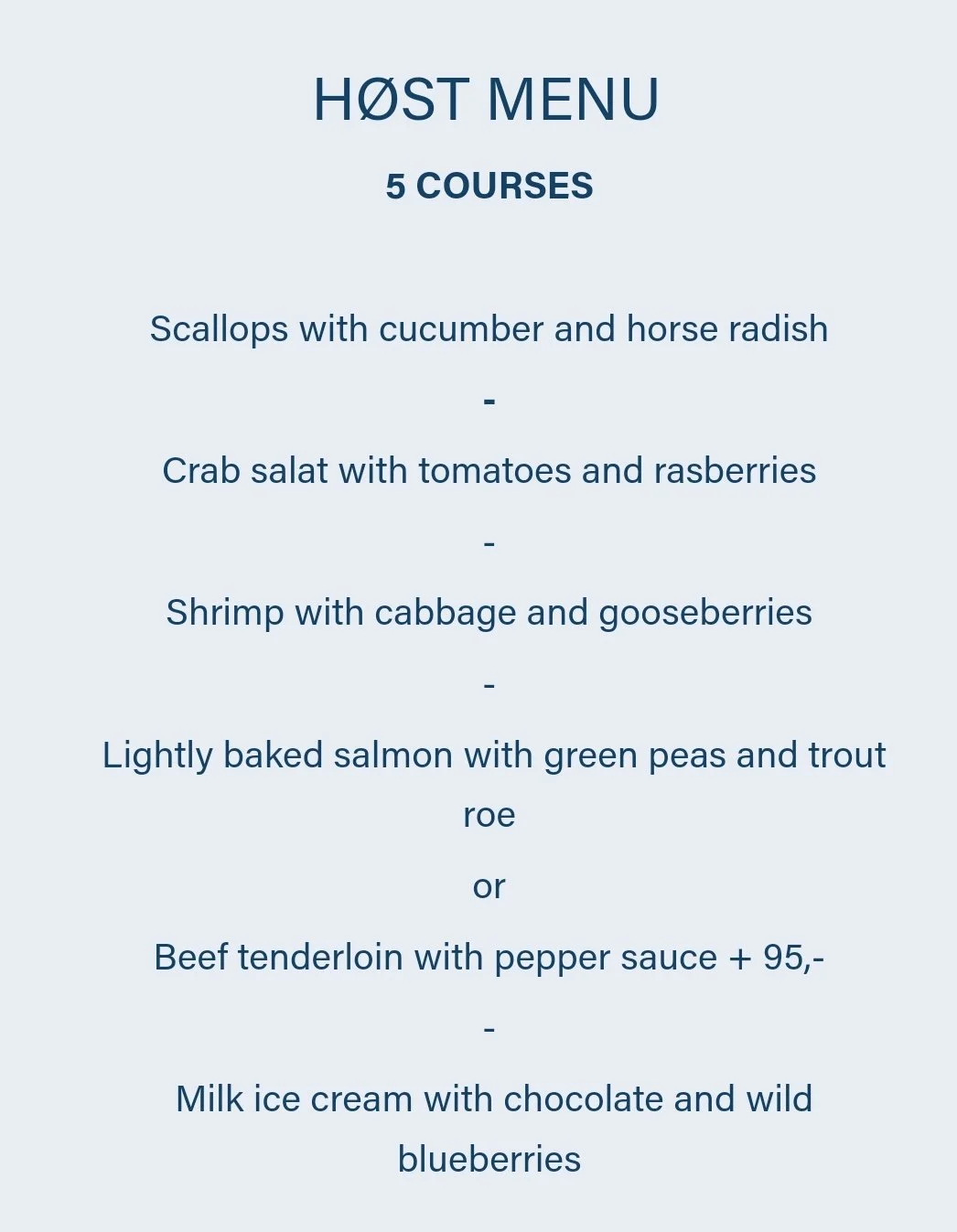 We chose the same “Evening at Host” menu, opting for salmon for our main course.