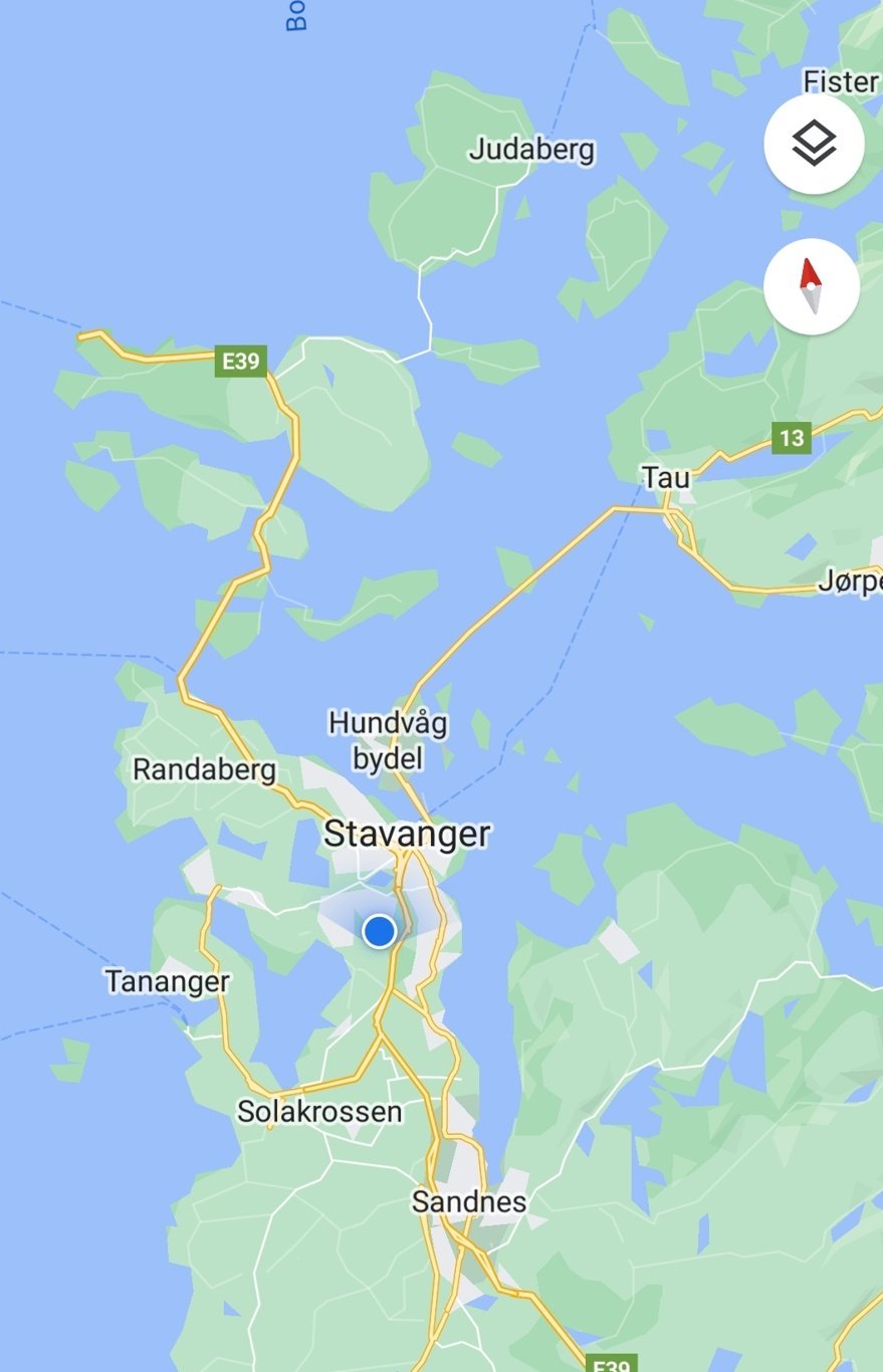 Our final stop was the highest point overlooking Stavanger. There was an observation tower here with all the communications aerials and so on and we pottered around the space, trying to work out where we were. Could we identify any recognisable landmark? With water all around, that didn’t seem to be a very useful clue and Nicholas wasn’t too sure either. There was only one answer: I got out my phone.