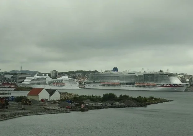 Returning to the ship feeling a bit peckish after all that fresh air, we wondered about taking a walk down town, but just as we were thinking about it, the rain started and a sandwich and a hot drink was more tempting. As we sat overlooking the path along the harbour, uploading photos and enjoying our lunch, we watched so many family groups returning to the P&O ship alongside. With more than 5000 on board that ship, it must have felt as though half of Great Britain was in town today.