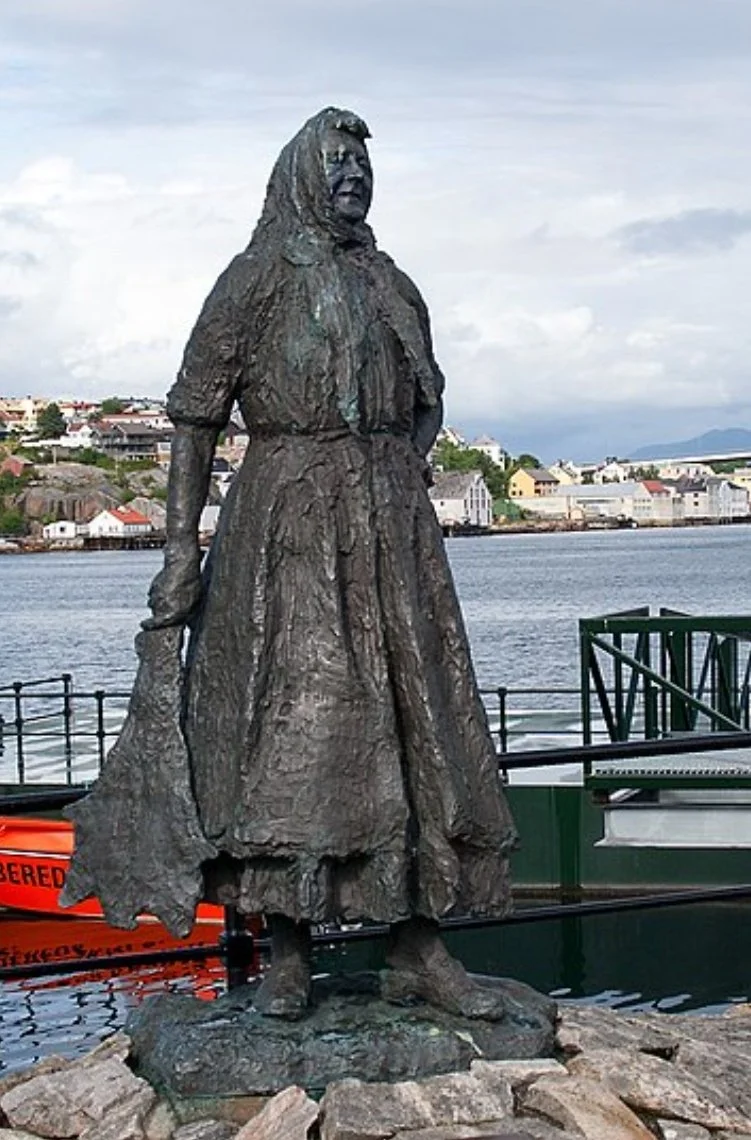 We were in Kristiansund today. It’s a city on an island. Actually it’s built on several islands, connected by bridges and tunnels with ferries running between them too. Water plays a great role in everyone’s life here in one way or another and the first landmark we came across upon leaving the ship was the Klippfisk Woman