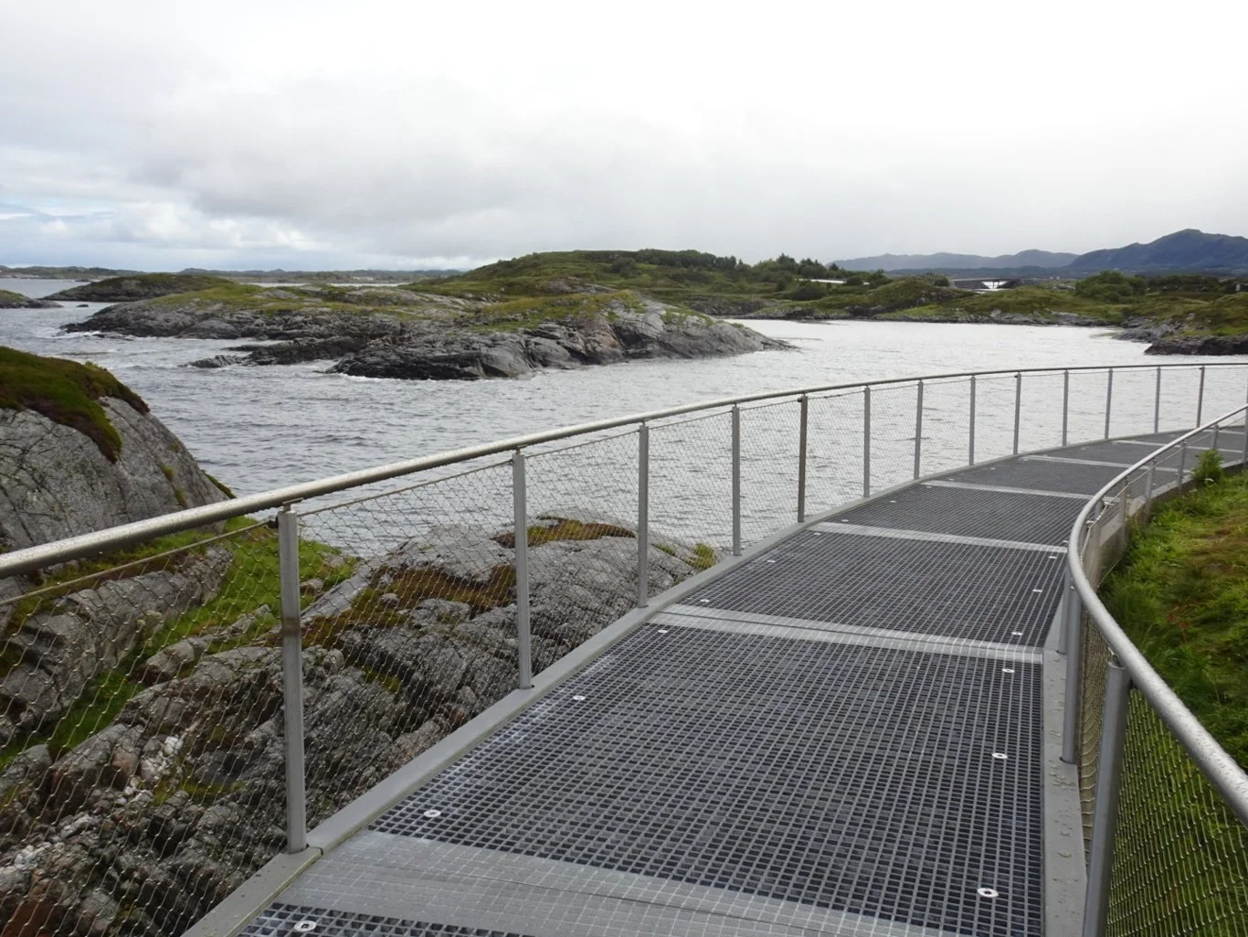 We’d not been driving for long before we were approaching the Storseisundert Bridge, the landmark bridge along the route and the one which reminded us so clearly of the Via Cantabrica in Spain. Here was a viewing spot, a place to park and to get out and see what it was all about. So that’s what we did.