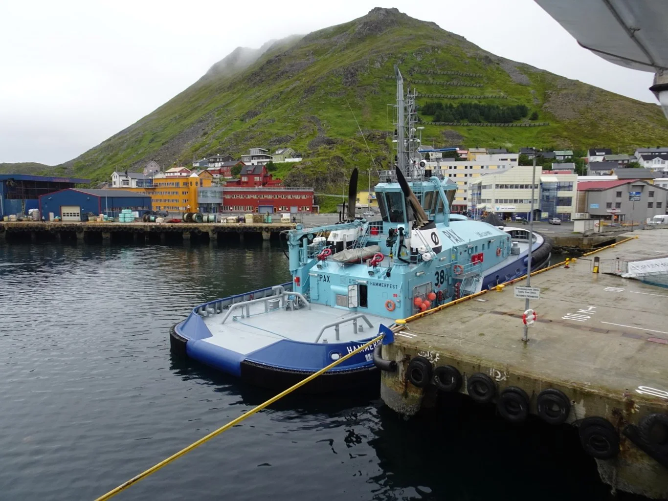 Looking out from our verandah, the morning looked fine and clear and I was fascinated to see the new and very modern tug there beneath us, proudly displaying the LPG fuel source.