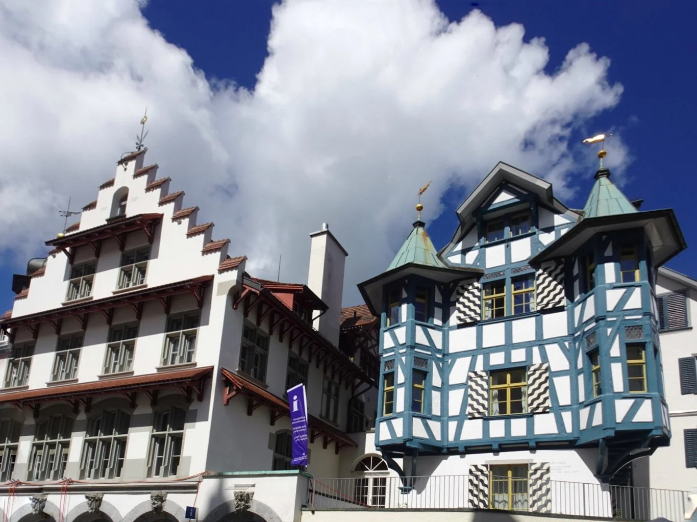 Not much more than an hour and a bit’s drive from here, the route takes us through more of the lush green countryside we love. The city of St Gallen is not only attractive in itself but is also the centre of the Swiss textile industry and home to one of my favourite museums too. It’s open on Sundays!!
