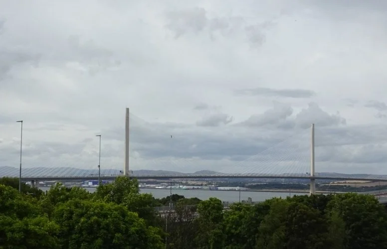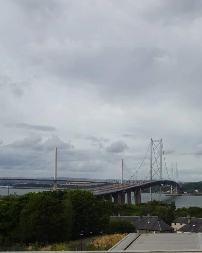 Over the Queensferry Crossing, the latest of the bridges over the Firth into Fife.