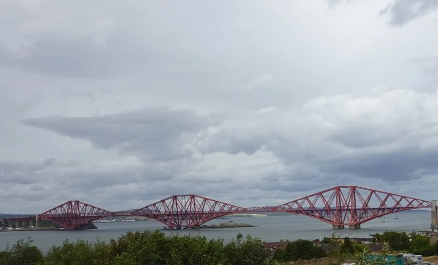 From this viewpoint, all three of the bridges were visible, if not in the same camera shot. The oldest of the three is the magnificent original Forth Bridge which takes the railway north.