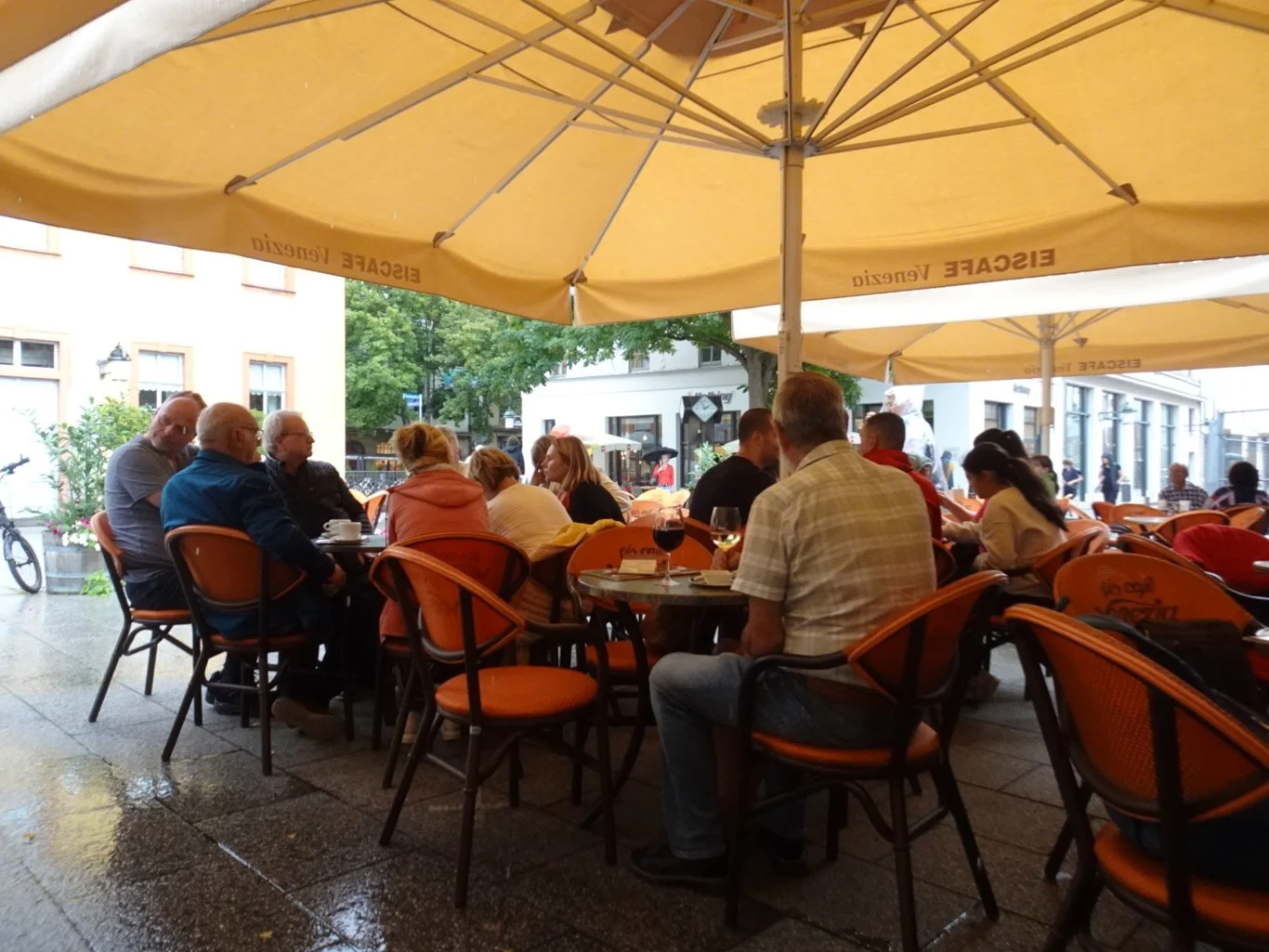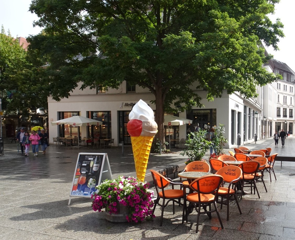 No sooner had we sat down beneath one of these enormous awnings outside the Eiscafe Venezia than the rain started. Thankfully, we were warm and dry there with our iced coffee and chocolate and the shower soon passed.