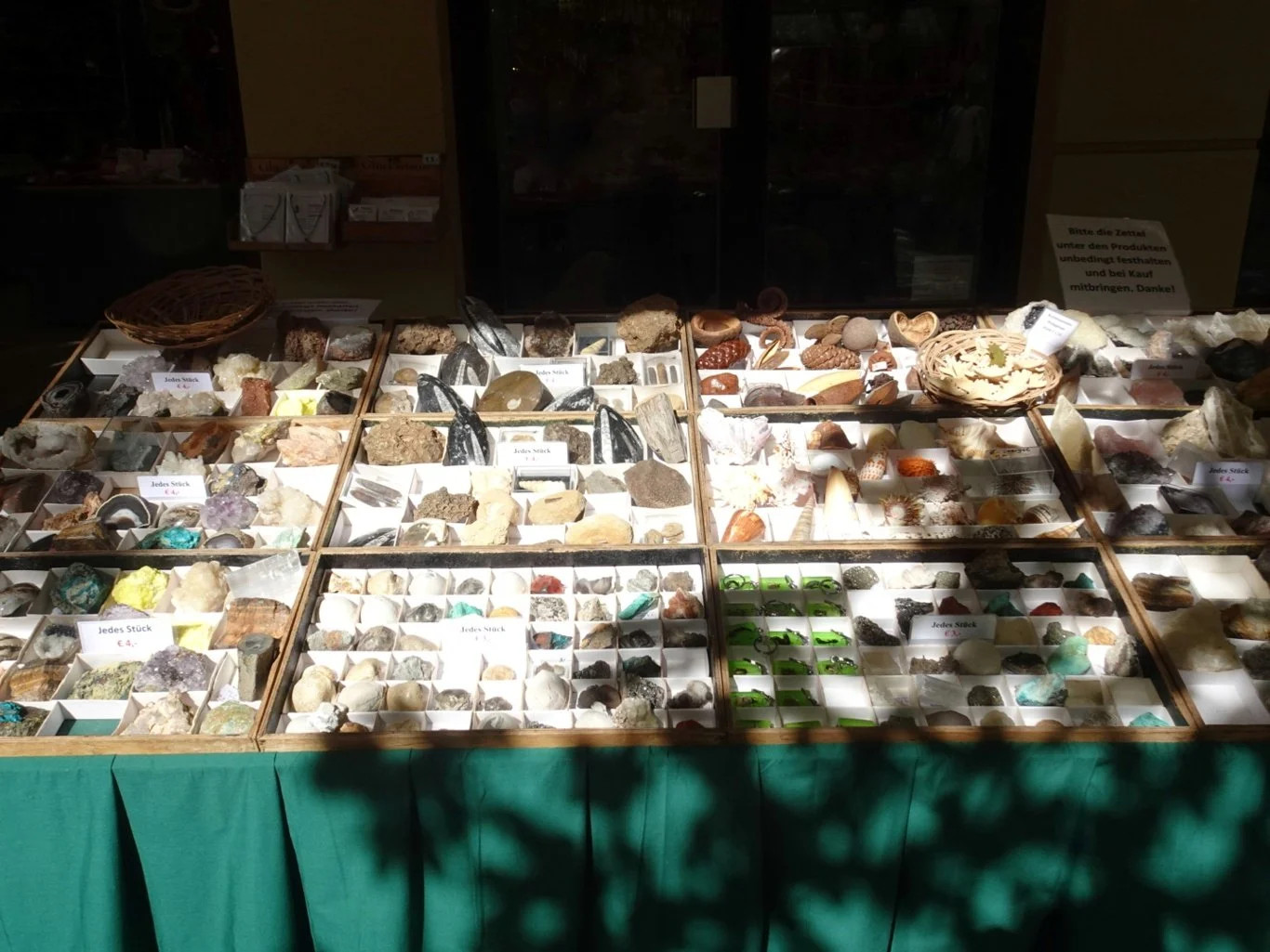 The whole table was filled with fossils and geodes. How unusual! Inside the shop were many more, larger geodes and other geological curiosities, but I think this was the first time we’d seen such a thing on a city centre street. Fascinating.