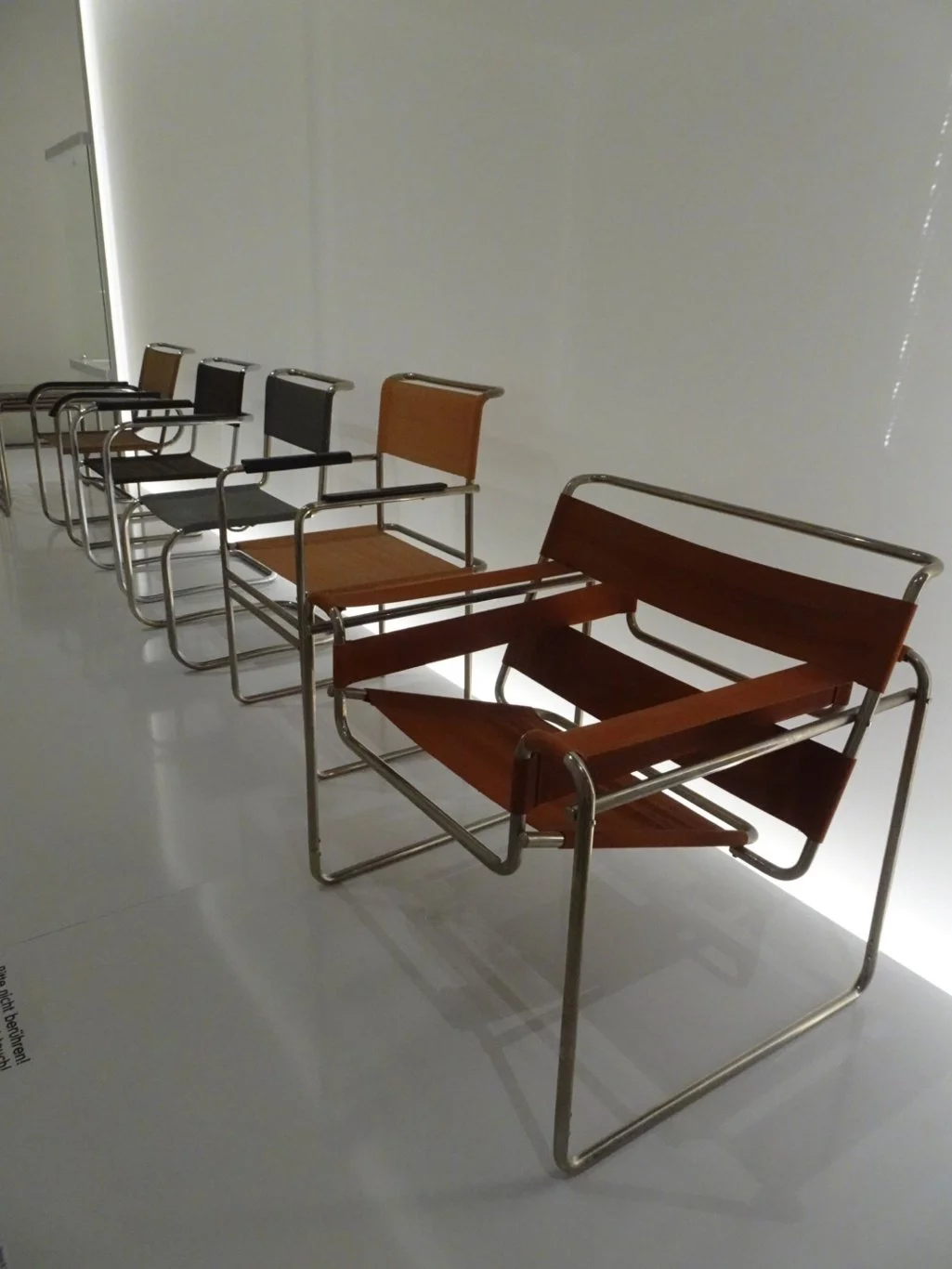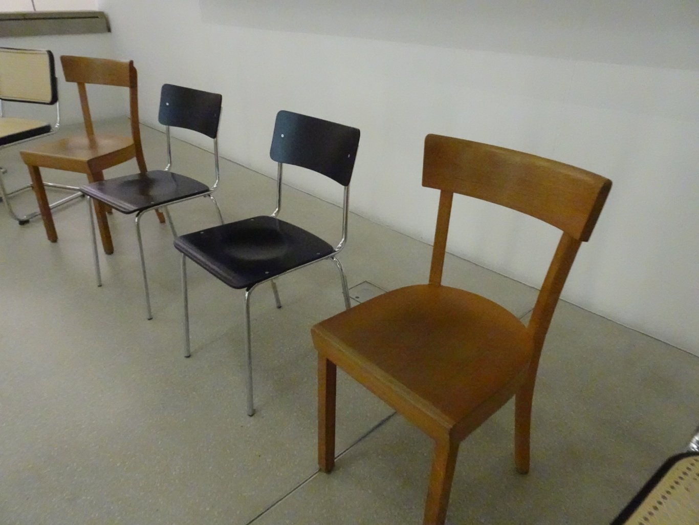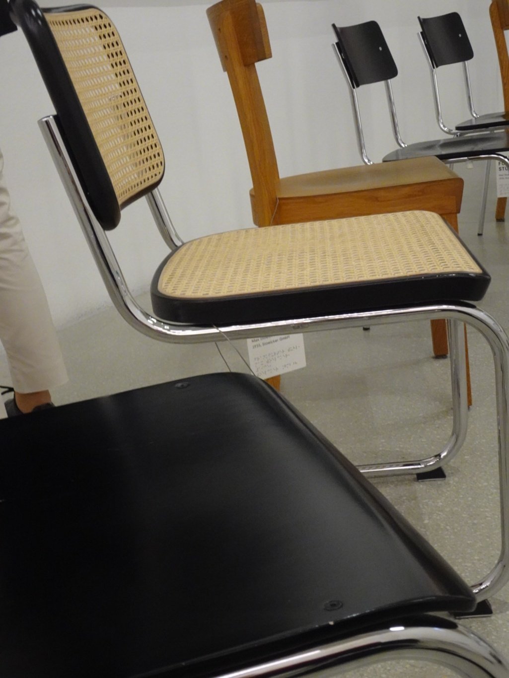 Some of the art was unsettling and a reminder of the challenges that new and avant garde ways of thinking presented during that time. So the change in mood as we went upstairs into the next gallery where we were invited to “sit down a while” came as a bit of relief. Here was a collection of Bauhaus designs, beginning with an assortment of familiar chairs.