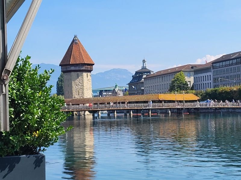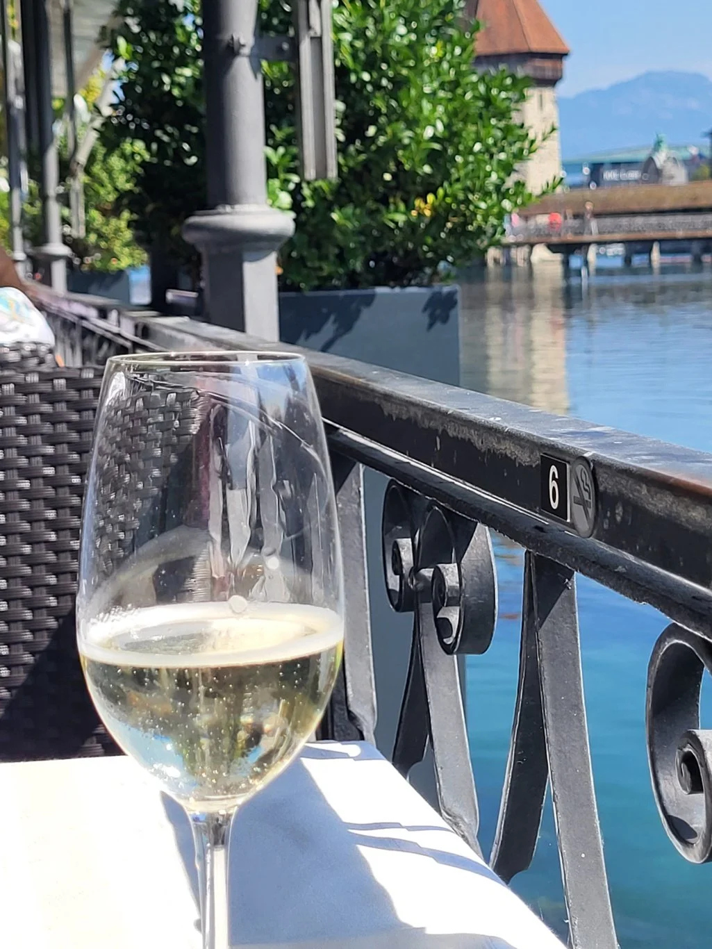 This weekend, we’re based in Luzern, for the opera premiere we’re going to tomorrow evening is in a small town nearby. We checked into a long time favourite hotel here by the river and took advantage of the welcome glass of prosecco, sitting in the sunshine for a while, overlooking the old wooden bridge.