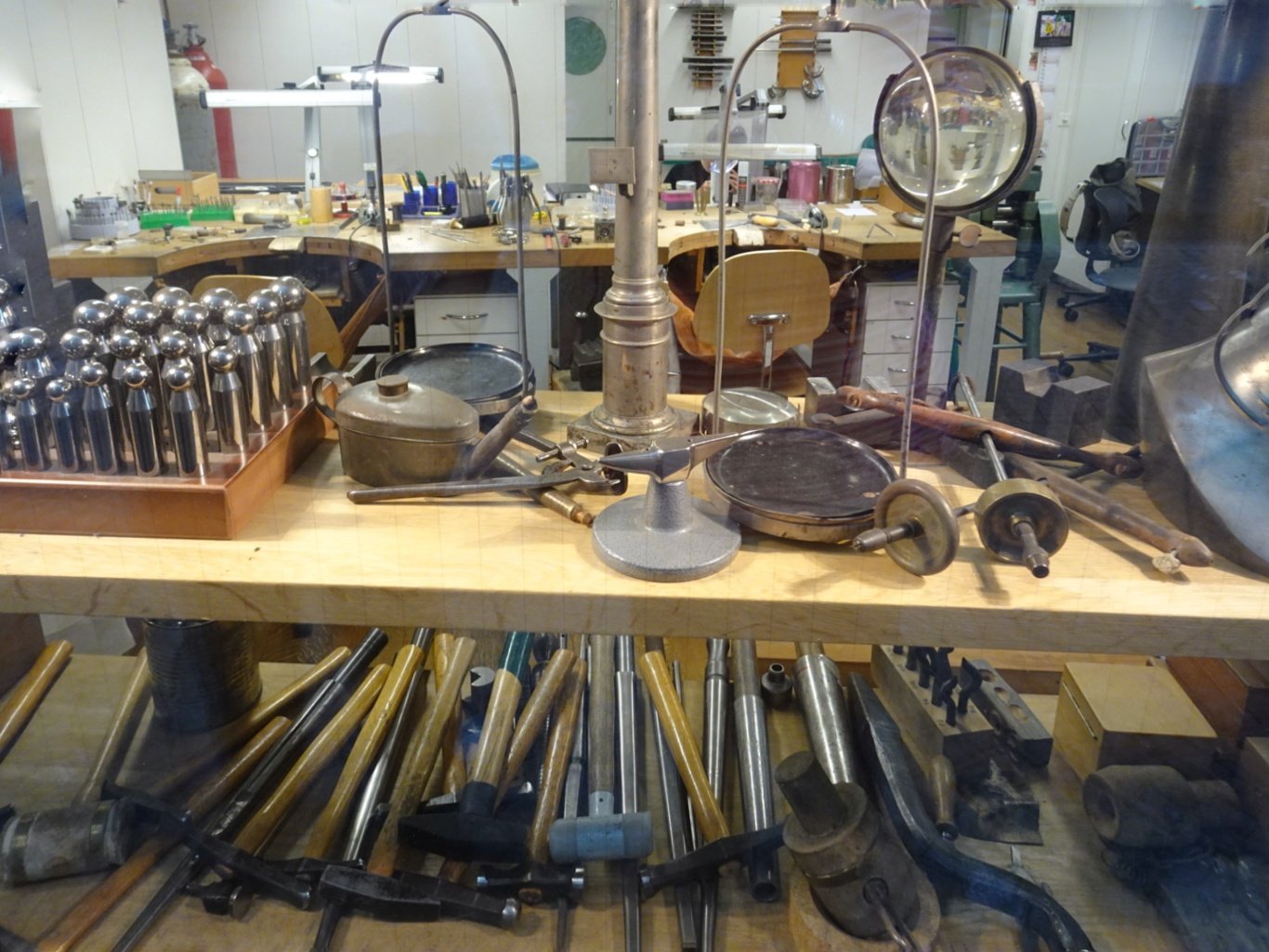 It was fairly easy to find distractions for those fifteen minutes, including this jeweller’s window which looked directly into the workshop. But one or two large drops of rain were starting to fall and taking shelter under a canopy, we willed the Fritschi to hurry up and open!
