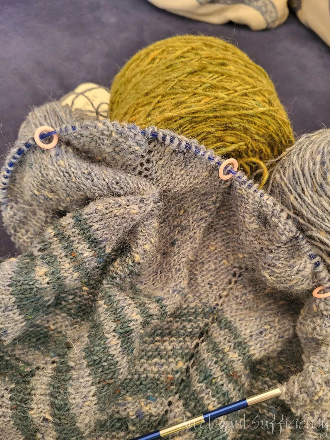 Knitting friends might like to note the needles, which I bought in Kristiansund, Norway thinking (crazily!) that I might get going on the scarf almost right away. They are KnitPro Smartstix and though clever, I’m not sure I like the highly reflective surface, especially when the sun is shining. Of course, there’s no real measuring to be done on the scarf either, which makes one of the selling points of these needles totally redundant as well.