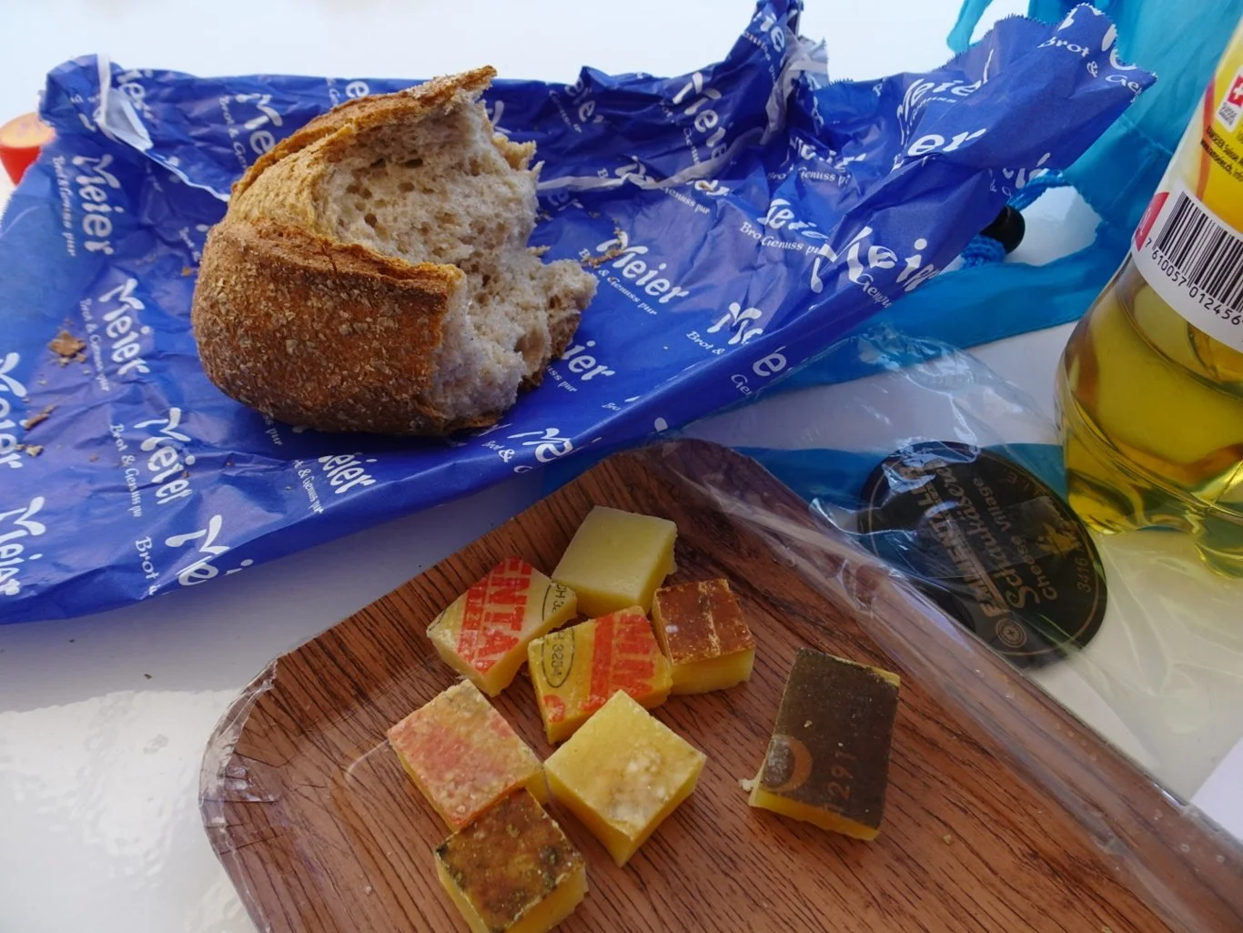 We soon found what we thought would be an ideal lunchtime picnic selection - a tasting set of the various types of Emmental on offer here. We could decide which one to take home with us! Except…that would be too late to buy it here.