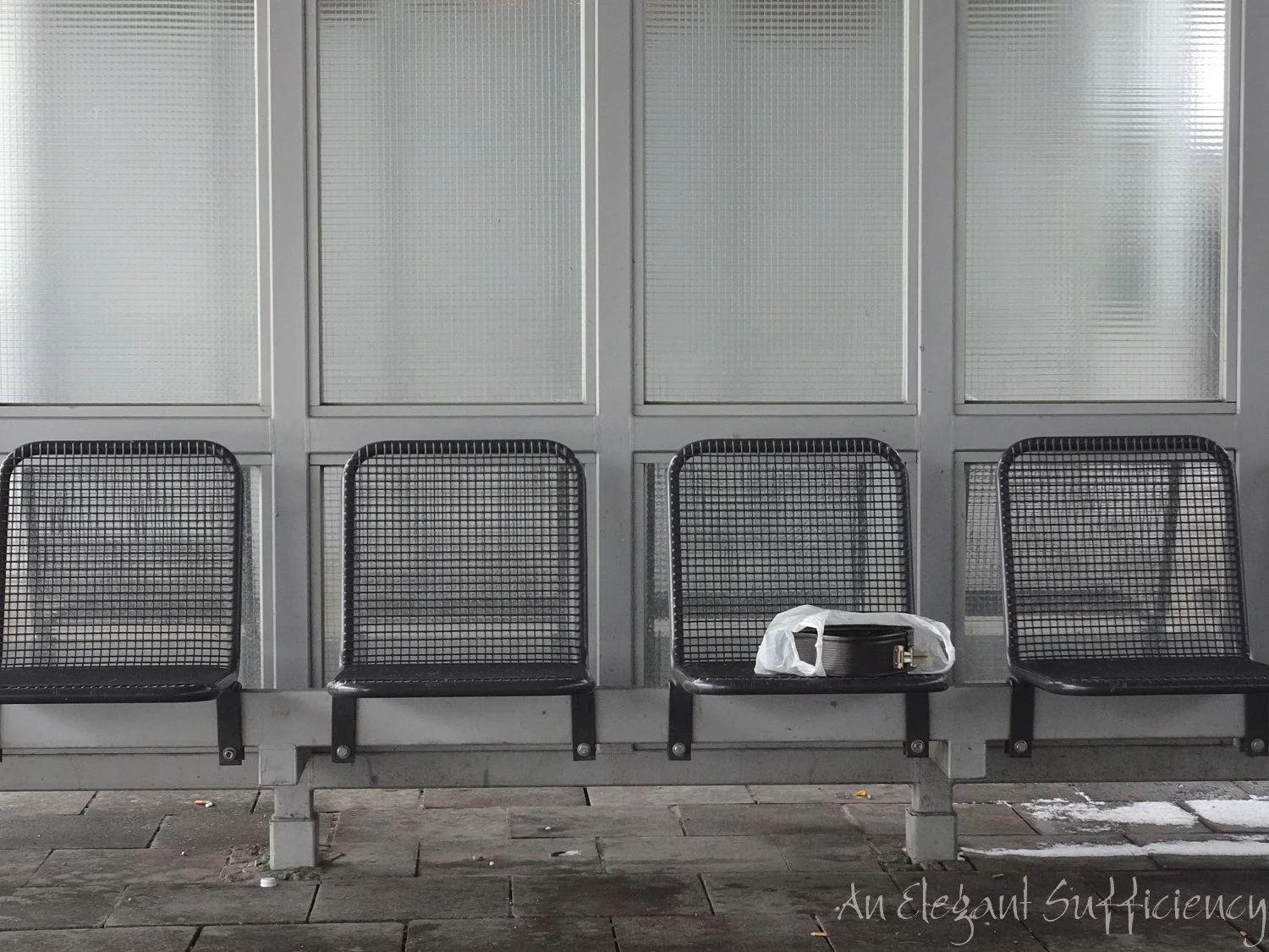 We were headed for the Ostbahnhof, from where we would catch a bus to our next destination. As we waited, I noted the strange “lost property” on the seats across the way. I wondered how long it would be before the owner misses their baking tin?