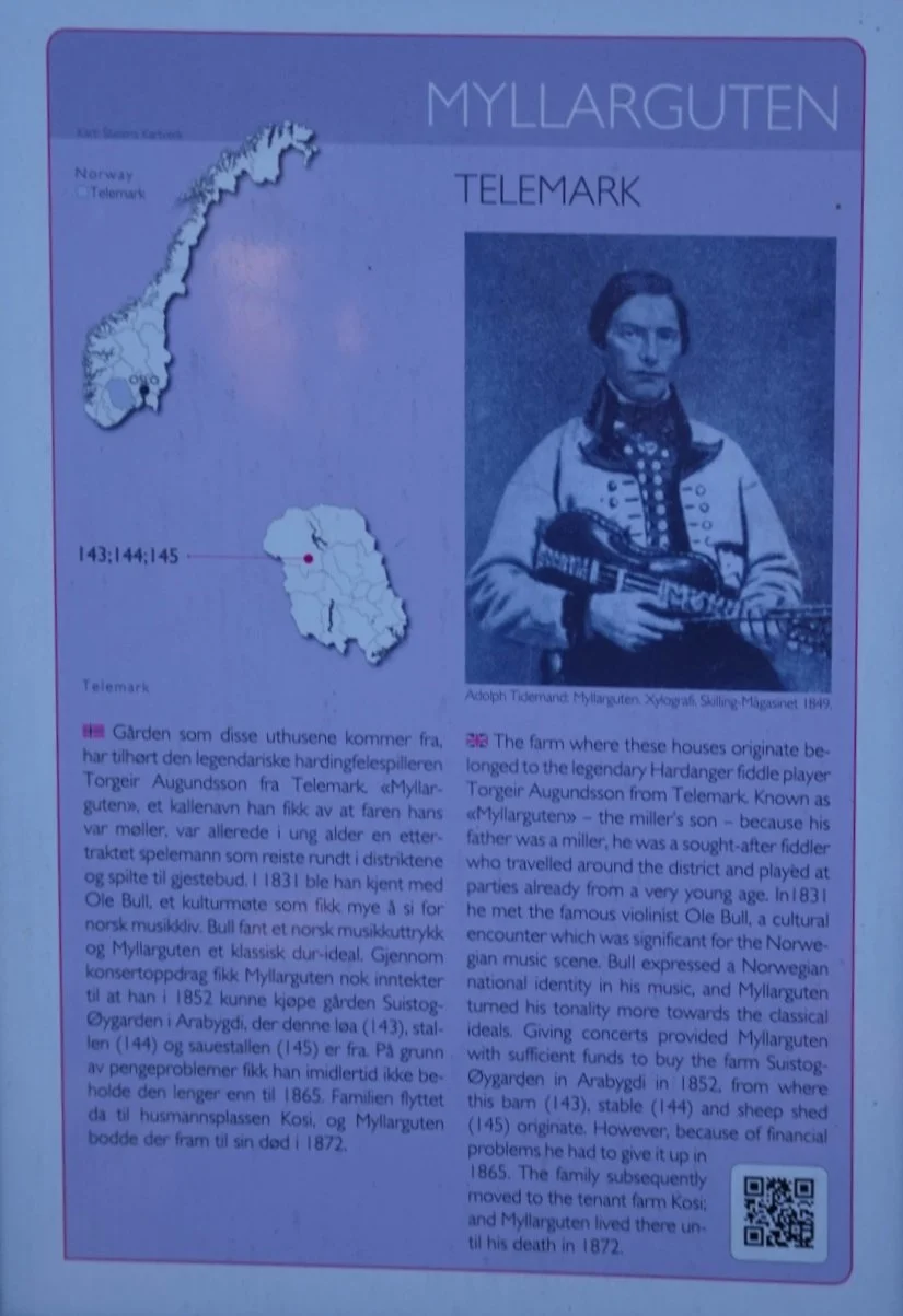 These houses came from Telemark and the details of their owner and his life were told on the board alongside. The QR code works for clearer reading too.