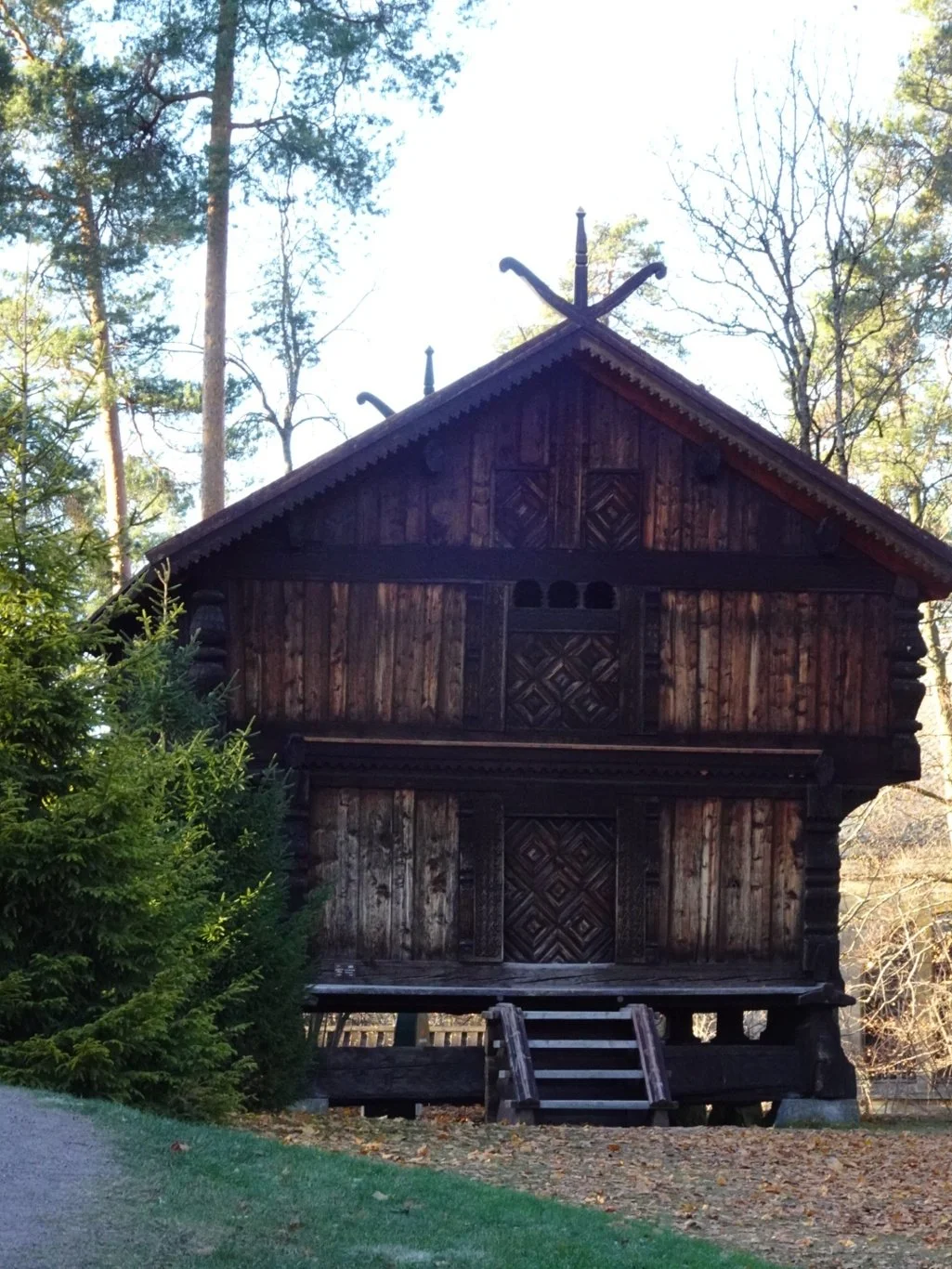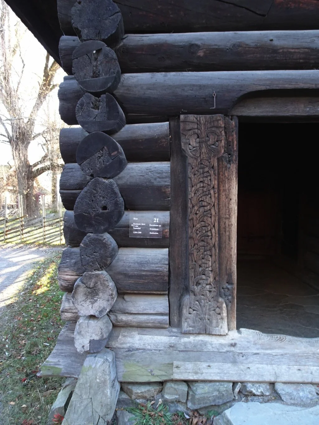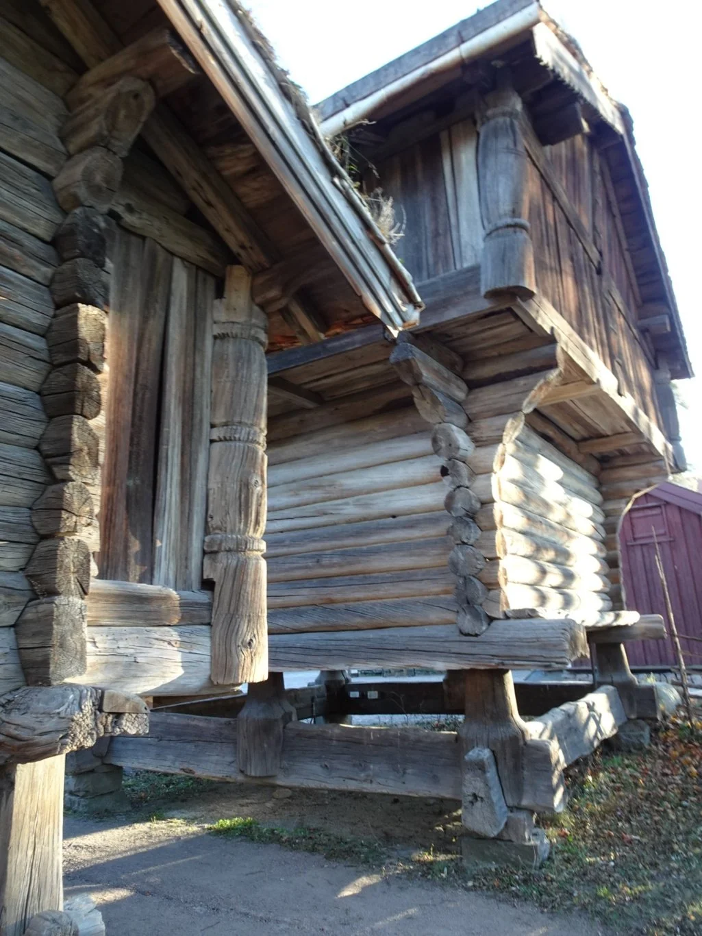 Next, we passed another small wooden house with yet more intricate patterns on the doors. I noticed it was raised above the ground and immediately thought back to the buildings we'd seen in Northern Spain, trying to recall the name of them.