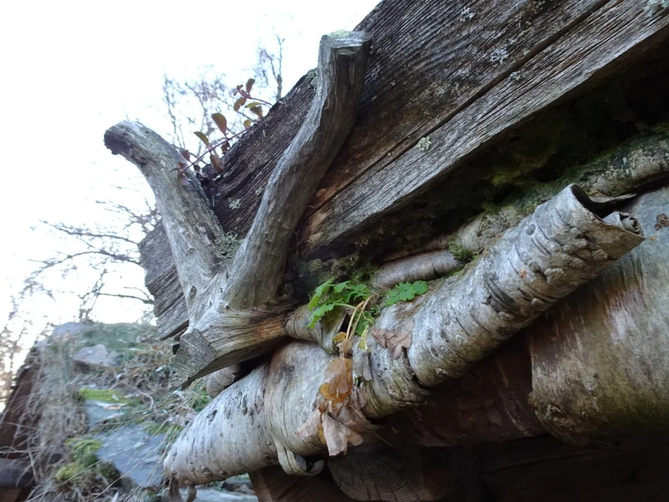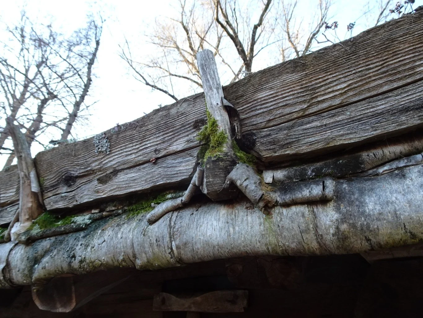 And then we turned the corner and spotted some fascinating construction detail, like this birch lining to the turf roof, held in place by a well-chosen branch. Or several similarly well-chosen branches. Isn't that clever?