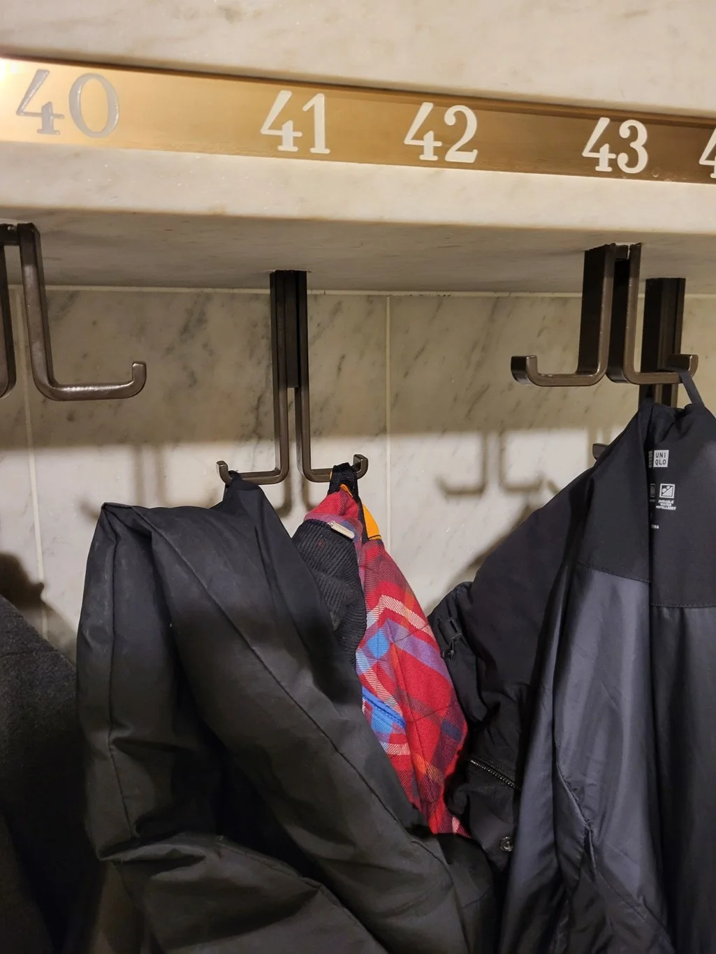 Not only did we have seats, but our coats had reservations for their own hooks in the cloakroom too!