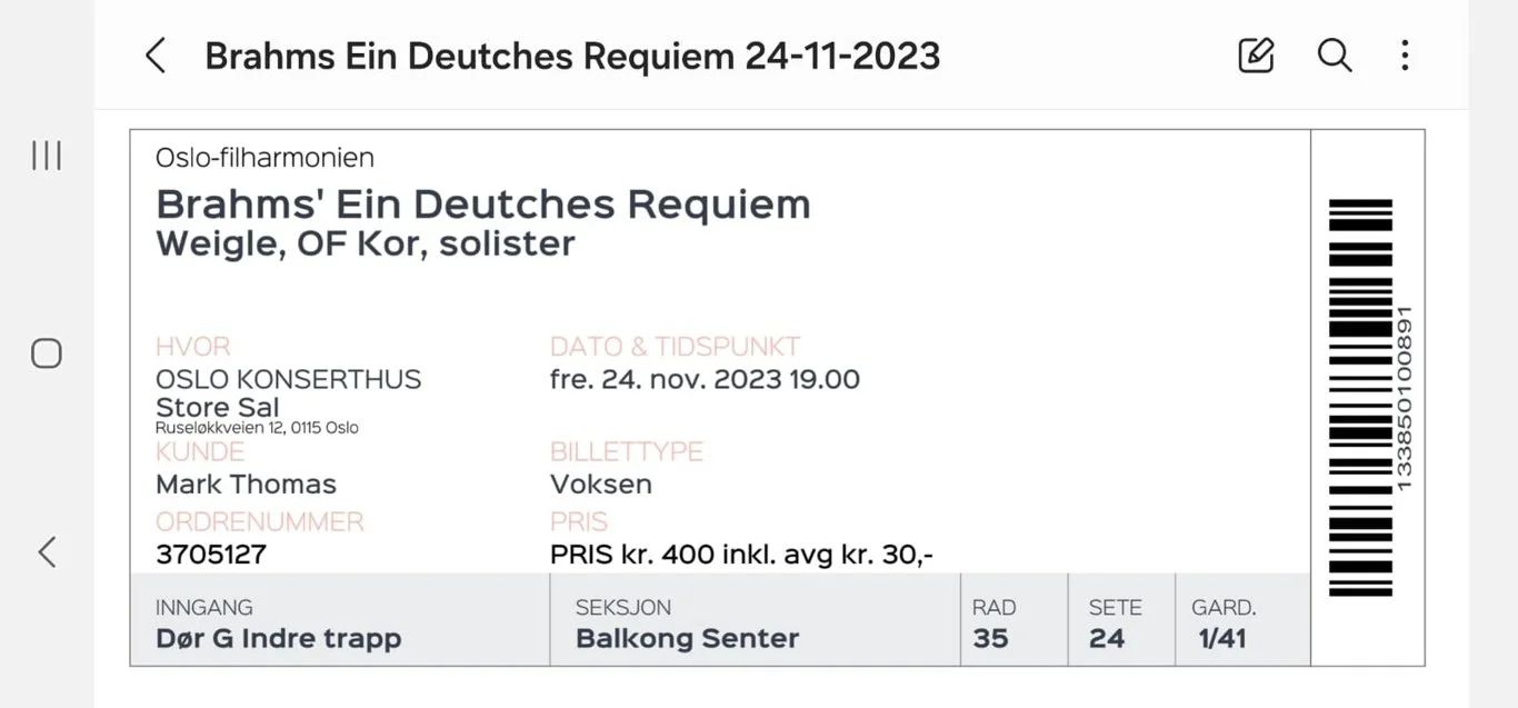 In the early evening we caught a tram to the concert hall, noting the details on our tickets.