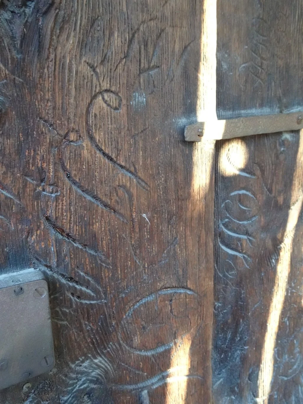 This one, originally a stable, had the most beautiful carved scribbles on the door.